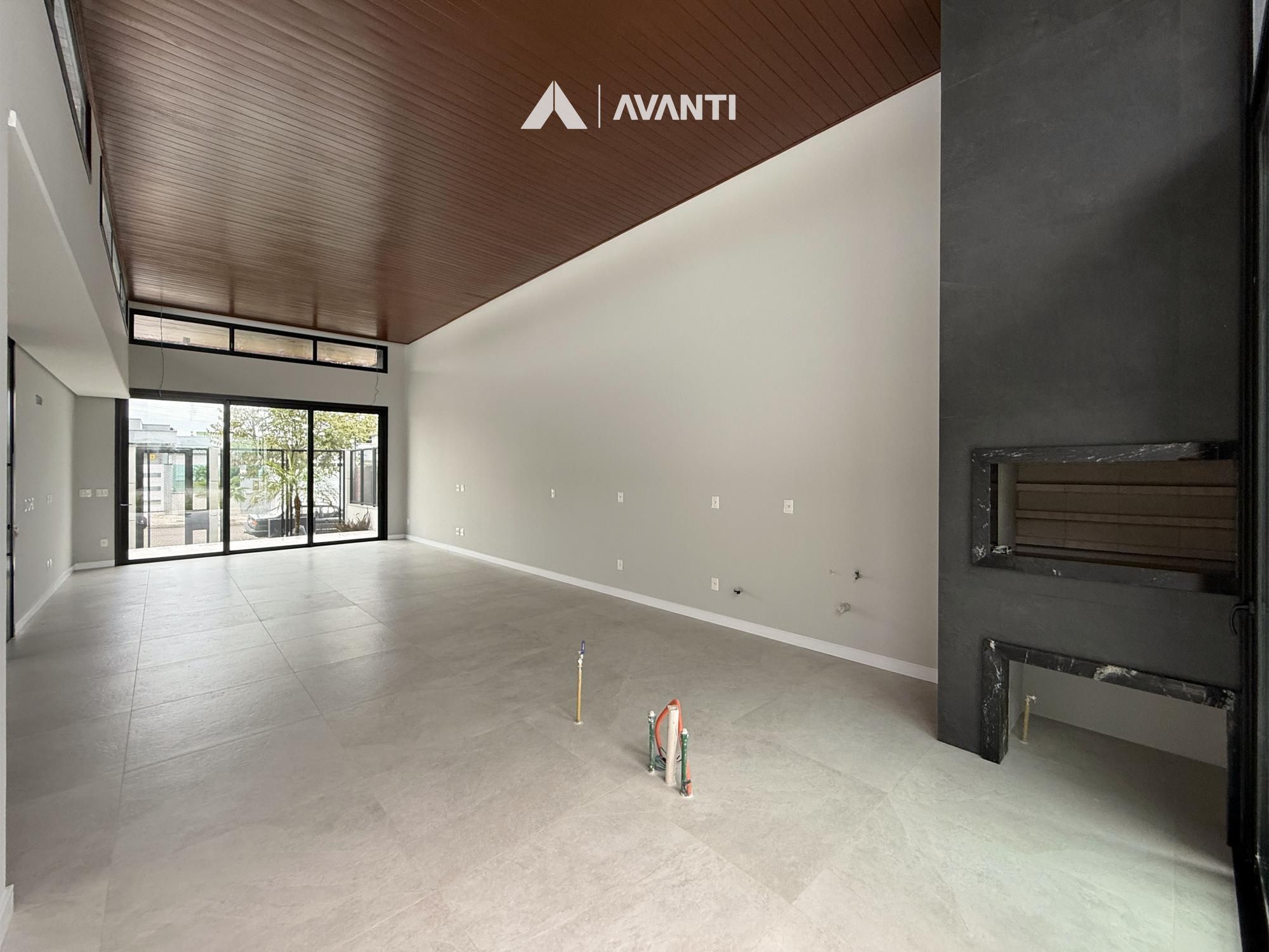 🔹 Living com pé direito duplo | Churrasqueira