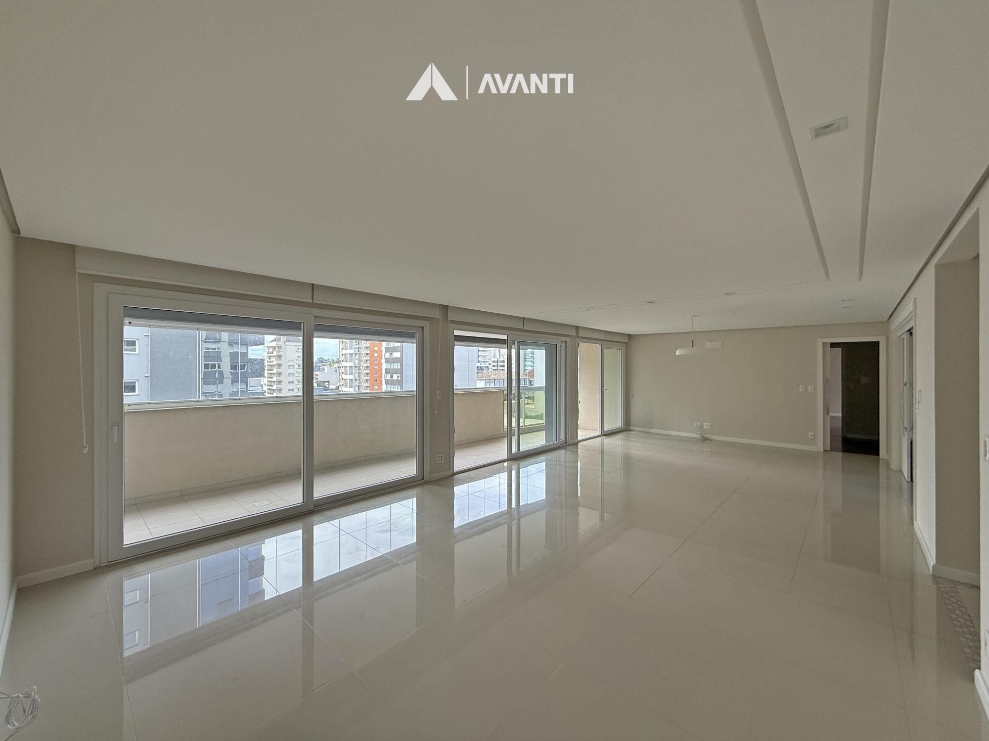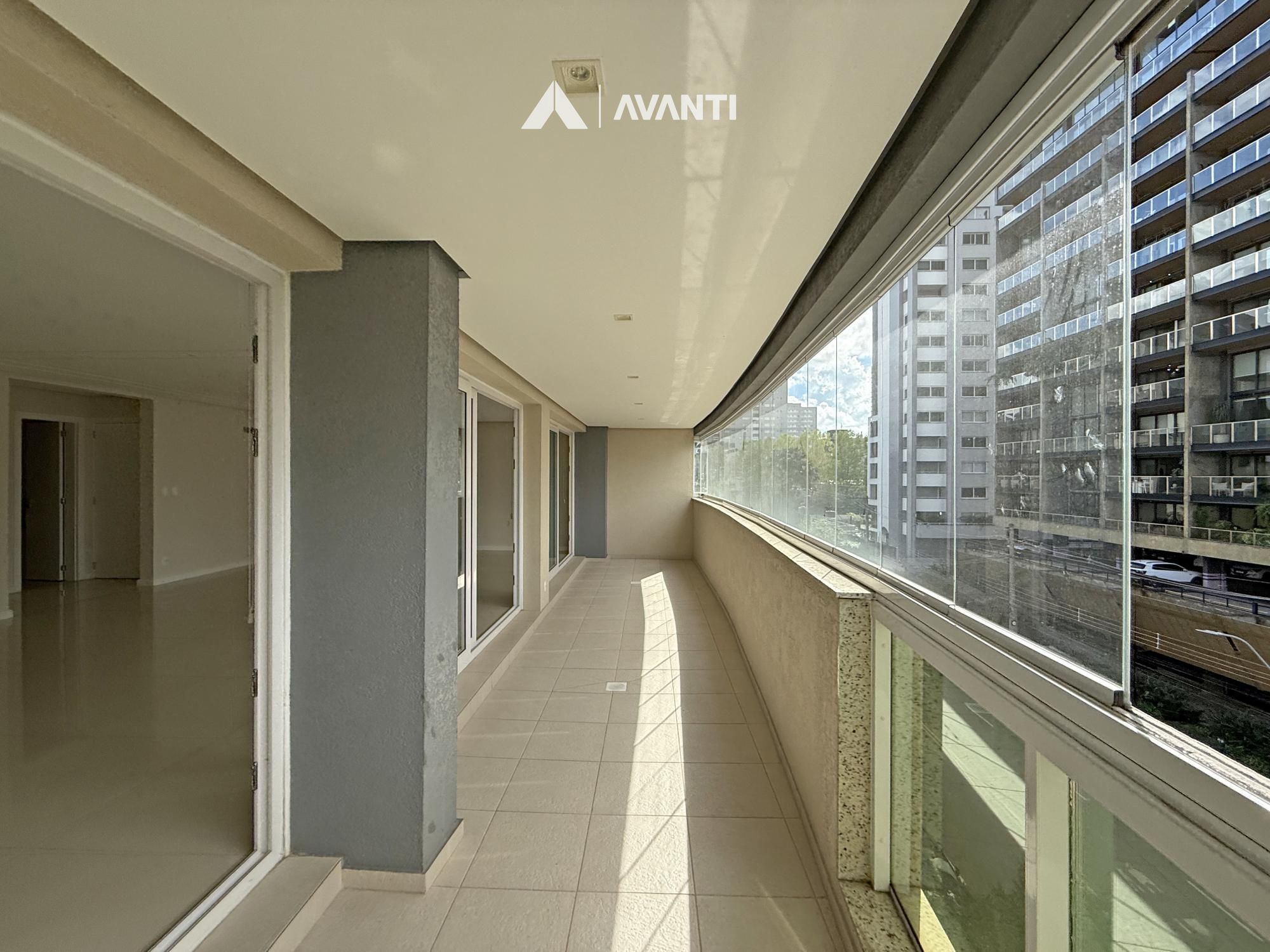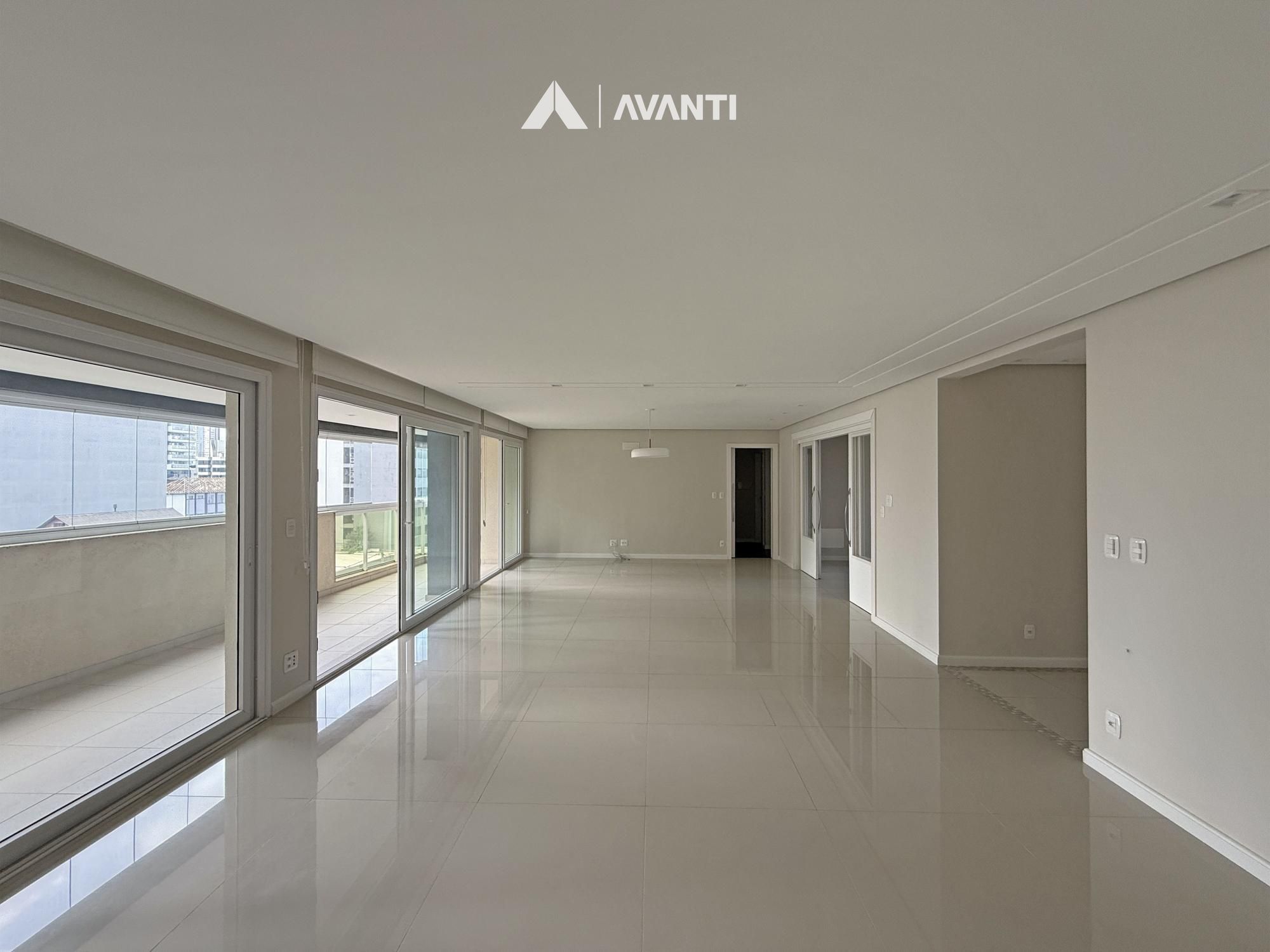 Com 207 m² privativos, este apartamento se destaca pela amplitude e pela forma como os ambientes se conectam. O hall de entrada com lavabo conduz a um living integrado que acomoda estar e jantar, além de uma sacada de grandes proporções com fechamento em esquadrias, ampliando ainda mais o espaço e permitindo uso em diferentes momentos.