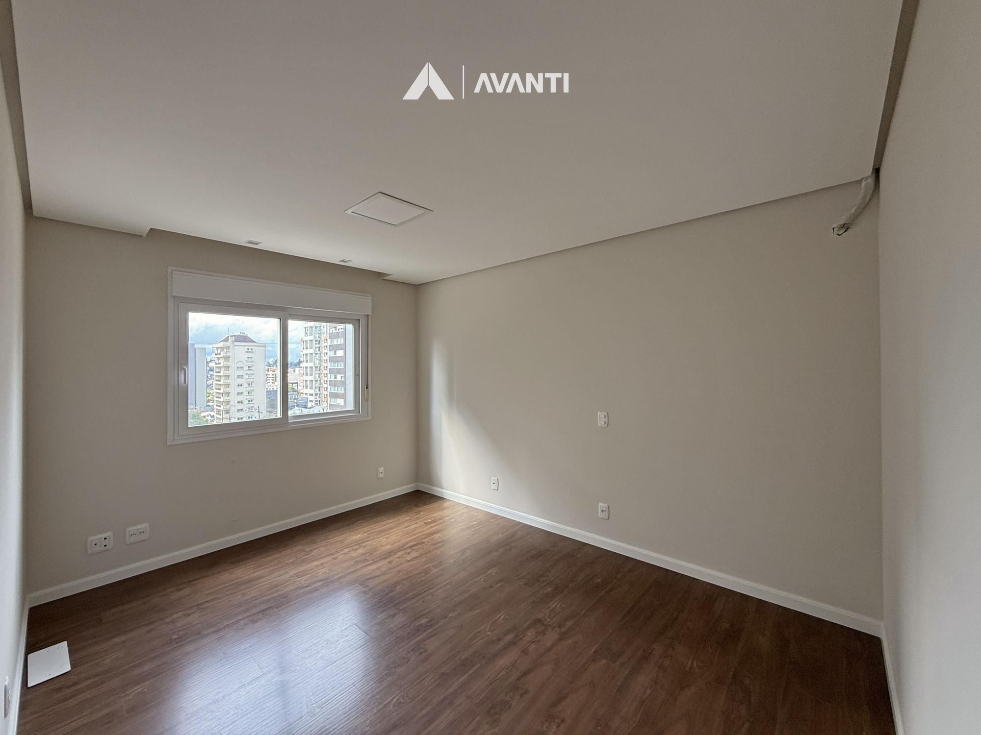 Na área íntima, são três suítes bem distribuídas, sendo uma com sacada fechada, garantindo conforto e privacidade em todos os ambientes. O imóvel dispõe ainda de quatro vagas de garagem.