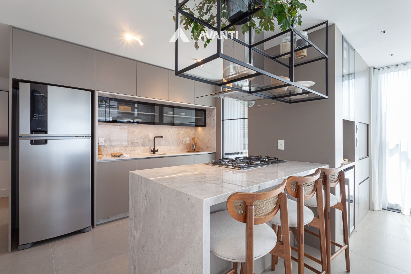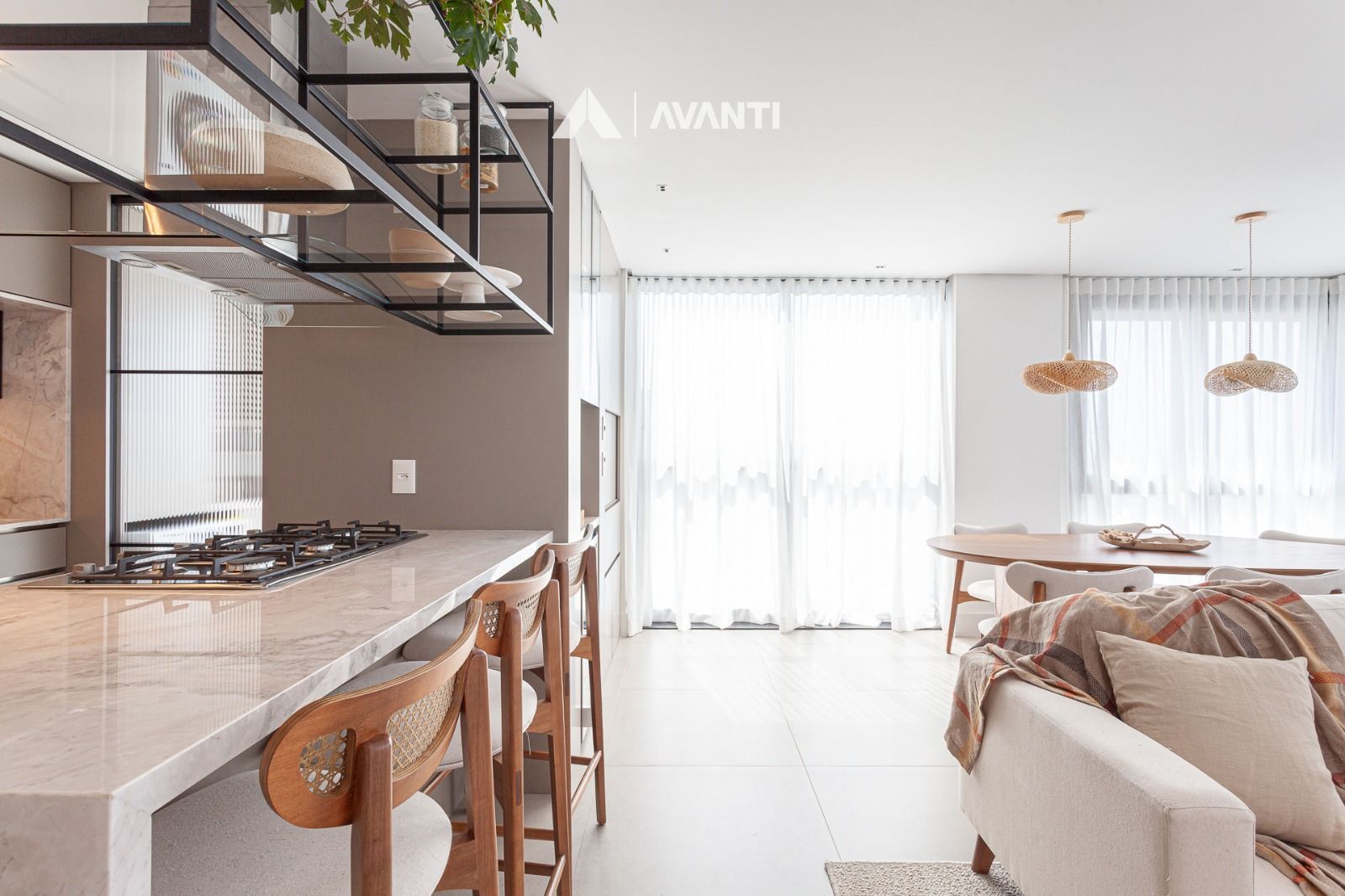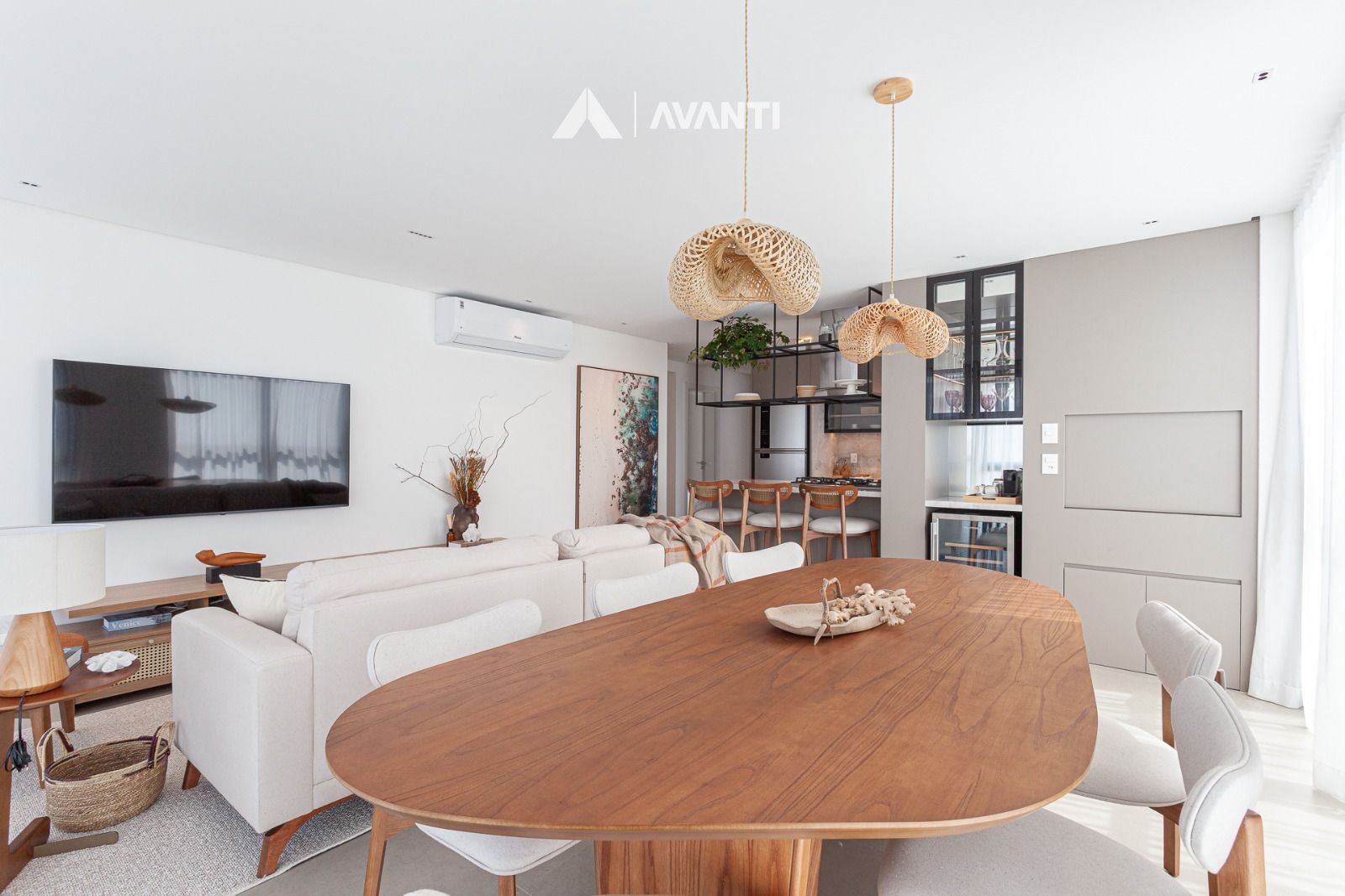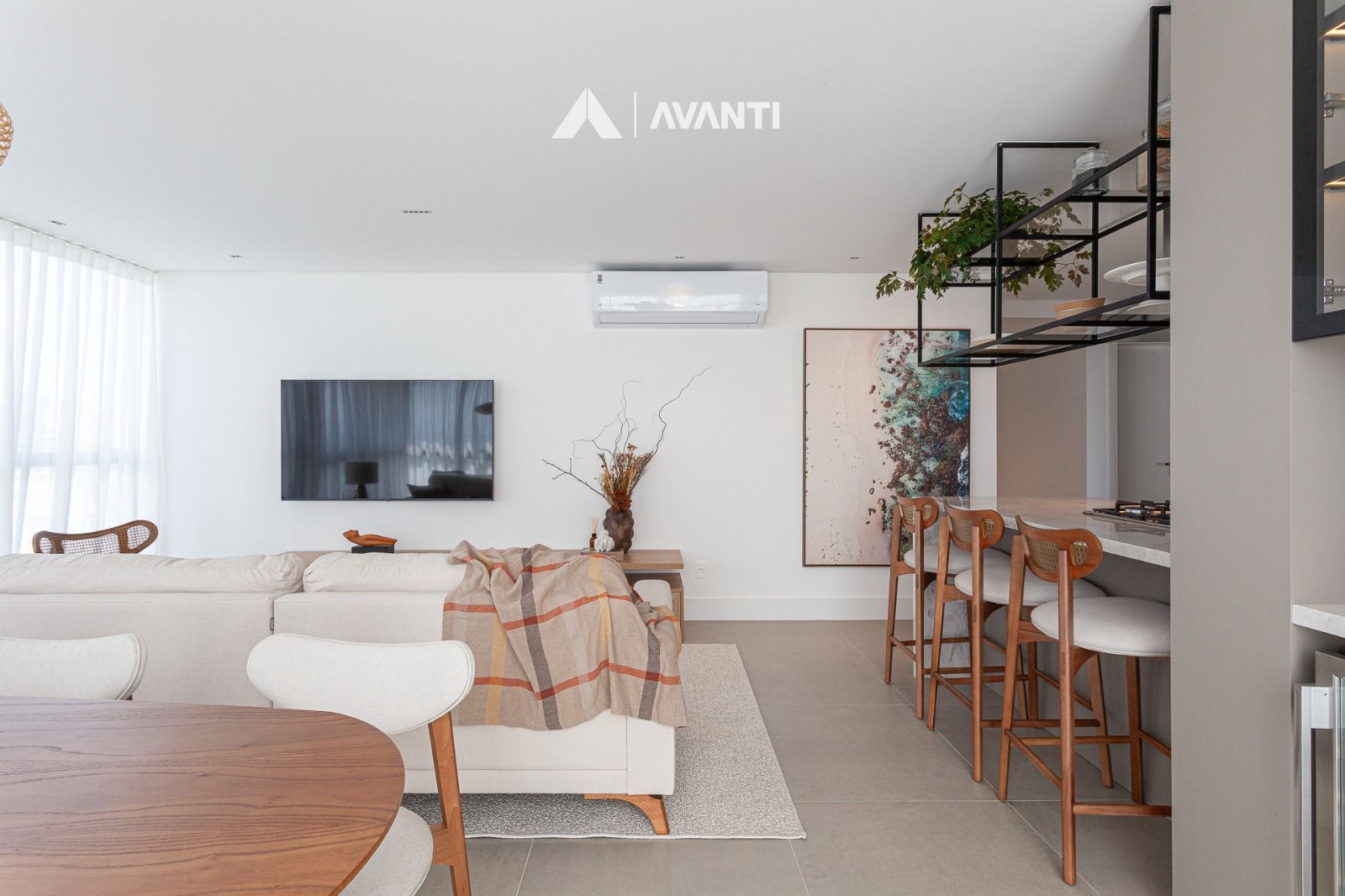 Living com cozinha, estar e jantar integrados, lavanderia independente. Fina mobília, churrasqueira, piso em porcelanato, ar condicionado.