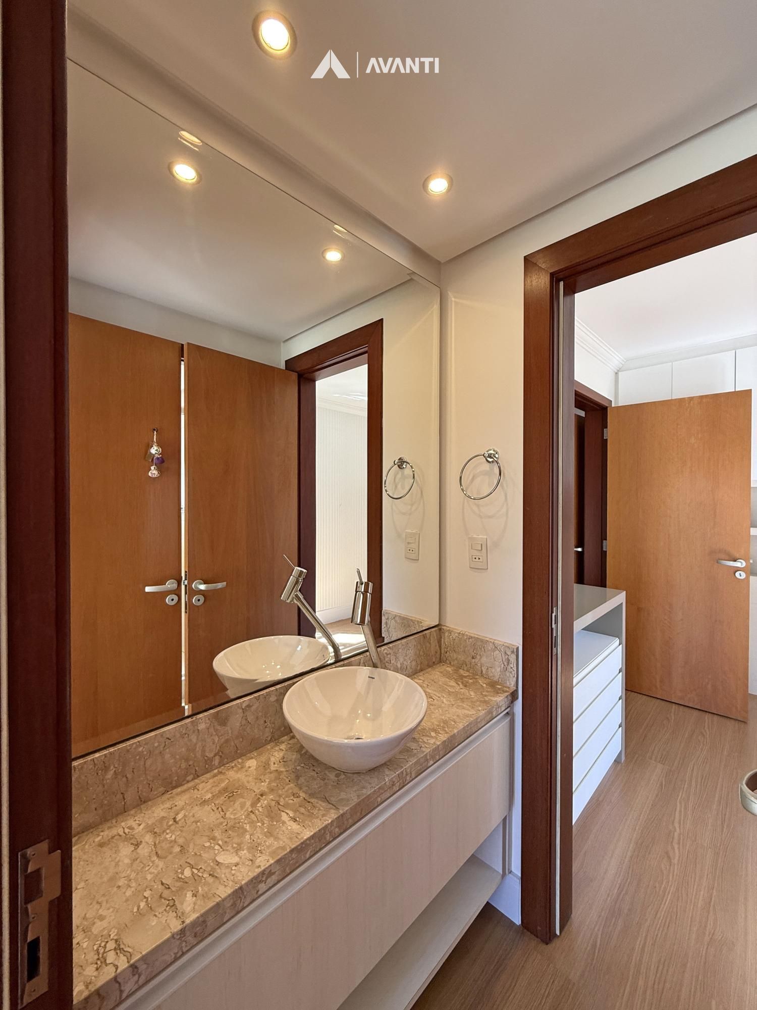 Na área íntima, são 3 suítes, sendo 2 no formato americano, oferecendo versatilidade tanto para famílias quanto para quem busca um espaço extra para home office. O apartamento conta com split instalado, aquecedor de passagem, aberturas em alumínio e acabamentos em piso laminado e cerâmico.