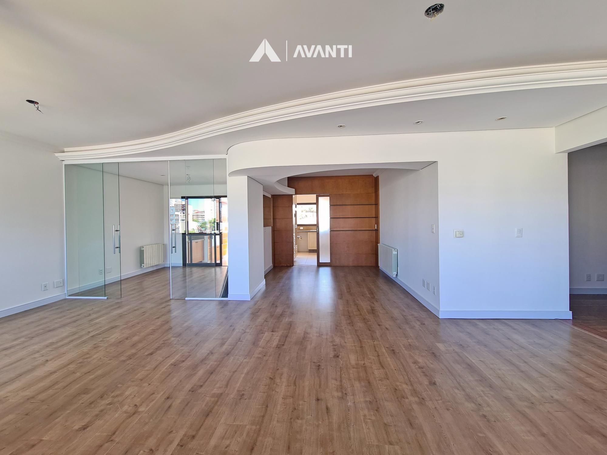 Composto por living 3 ambientes, sacada, espaço gourmet fechado, cozinha com área de serviço com banheiro e dependência (pode ser adaptada para 4º dormitório) e banheiro social.