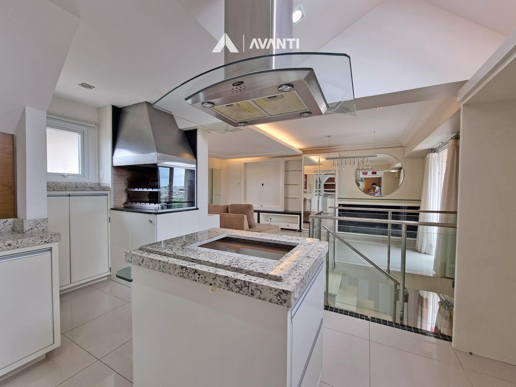 No pavimento superior fica o amplo estar social em conceito aberto, sala de estar, cozinha americana com churrasqueira, lavabo, sacada e área de serviço.