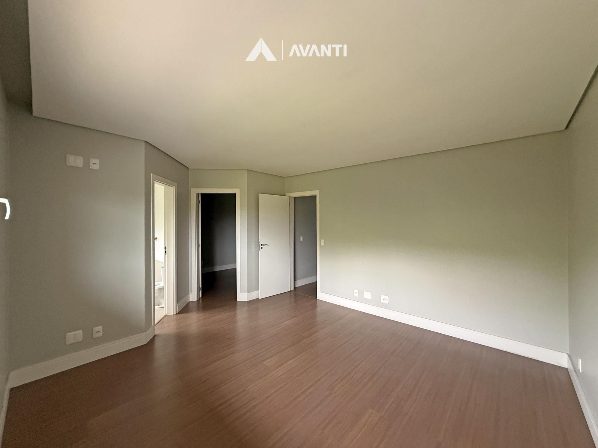 A residência dispõe ainda de espera para calefação, acabamentos em gesso, piso em porcelanato nas áreas frias e piso laminado nos dormitórios e depósitos — soluções que aliam conforto térmico e acabamento cuidadoso.