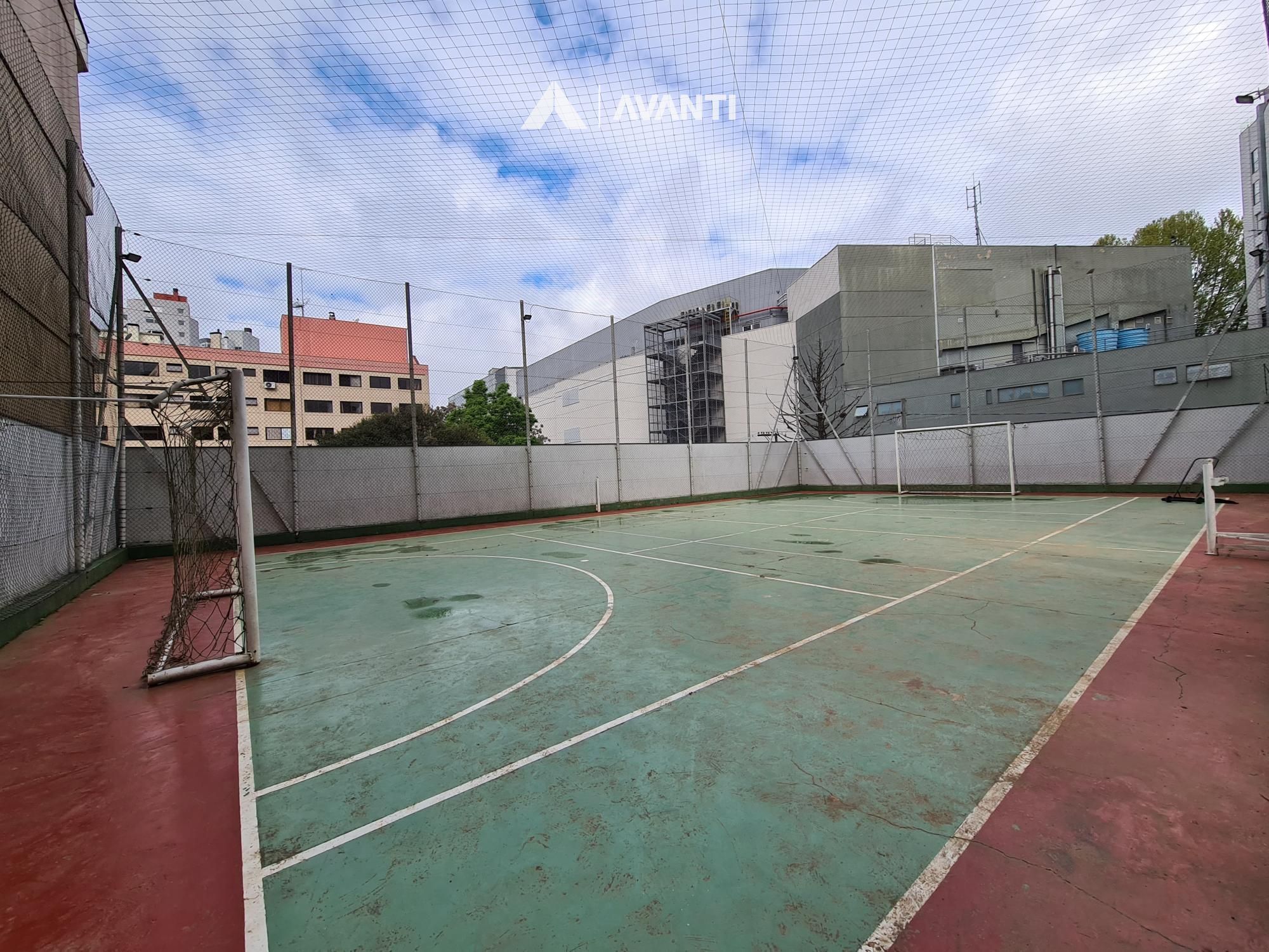 Residencial com hall de entrada, portaria 24 horas, elevador privativo, salão de festas e quadra poliesportiva.