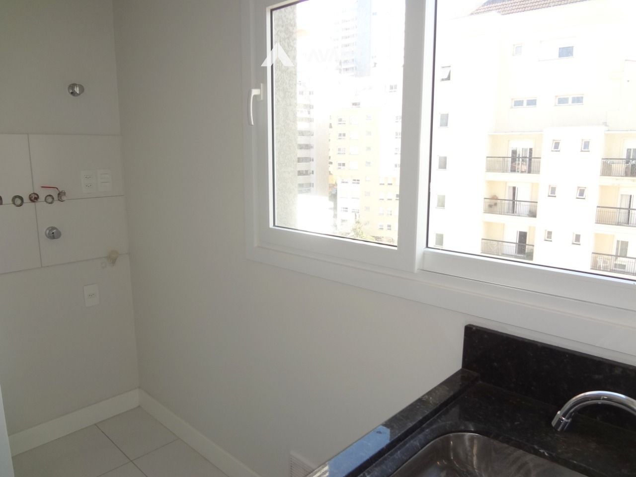 O apartamento possui 01 dormitório sala de estar e jantar com sacada, cozinha com churrasqueira, área de serviço e banho social. Piso laminado, água quente, espera para split e 01 vaga de garagem no subsolo.