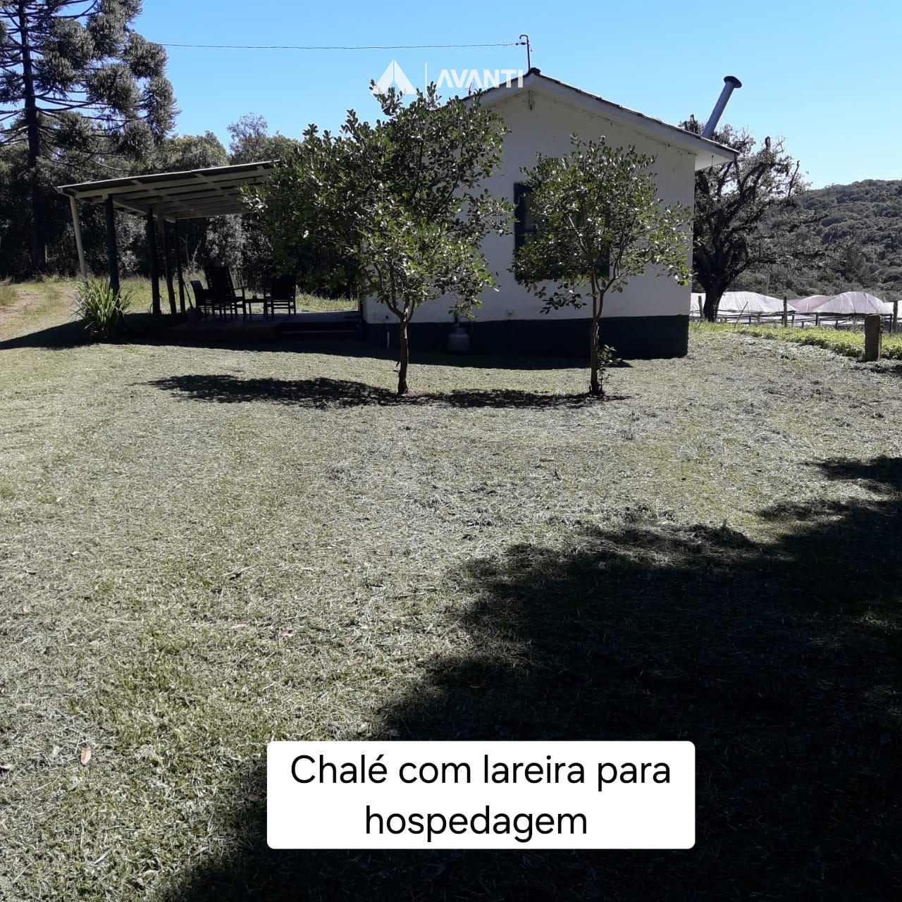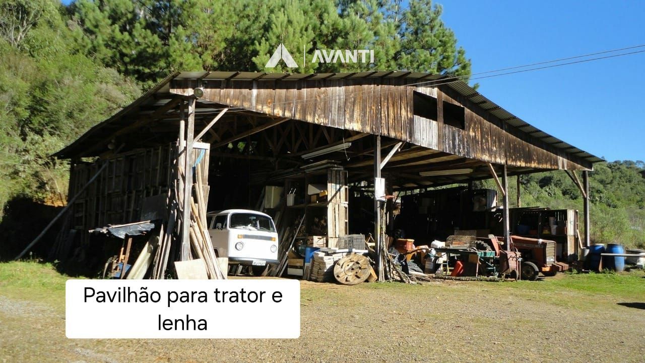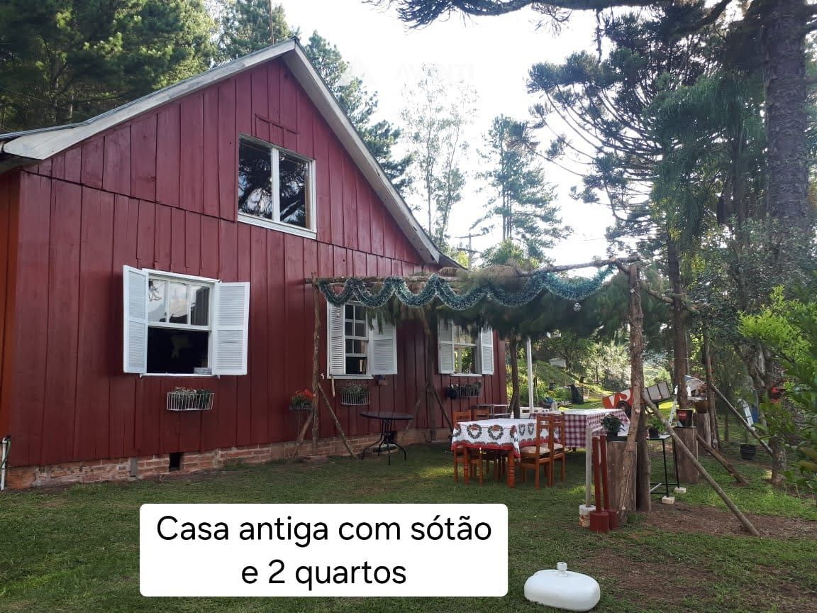 Possui 1 casa de alvenaria na entrada, 1 chalé com lareira para hóspedes, 1 casa antiga com sótão e 2 quartos. Todas mobiliadas e em bom estado de conservação. Salão de festas com cozinha, churrasqueira e banheiro todo mobiliado. Ampla área com churrasqueira ao redor com bastante grama e árvores. Pavilhão para trator e armazenar lenha. 2 estufas. Campo de futebol 7. Açude para se refrescar no verão com grama todo ao redor e muito peixe para pescar e trilhas ecológicas.