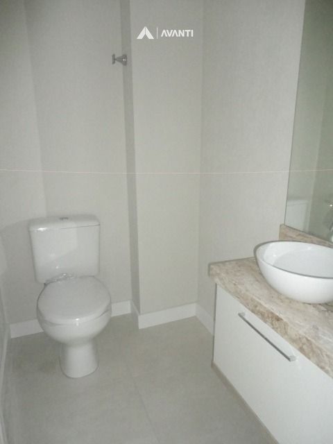 Sala aérea com piso porcelanato, lavabo, teto em gesso, aberturas em alumínio com vidros duplos, hidrômetro individual e vaga de garagem.