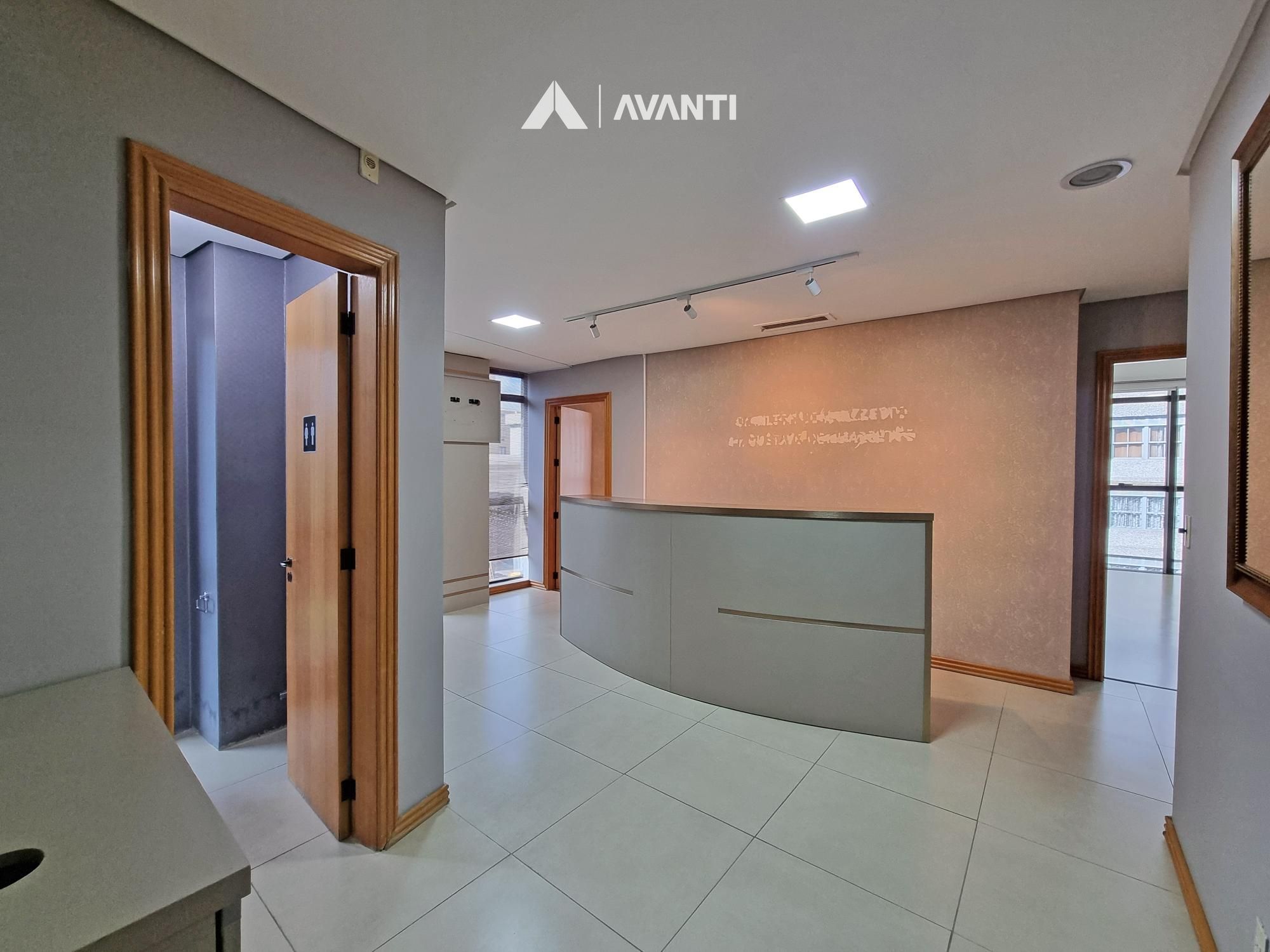 Centro comercial com hall de entrada, elevador e sistema de incêndio.