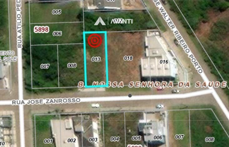 Terreno de esquina, frente leste, com 837 m² de área total.