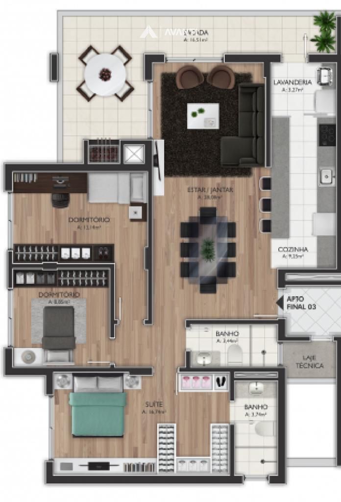 Excelente apartamento localizado em área privilegiada, tranquila e com muitos atrativos e facilidades em seu entorno, andar alto com vista e posição solar invejável, 3 dormitórios sendo 1 suíte, sala de estar e jantar integradas com a cozinha, ampla sacada gourmet com churrasqueira, aberturas em PVC, com vidros duplos e garagem para 3 carros.