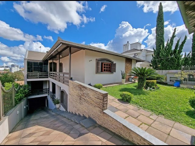 Segundo pavimento: Moradia com 4 amplos dormitórios sendo 1 suíte com closet. Hall de entrada, amplo living que integra sala de estar e jantar, cozinha com fogão campeiro e sacada fechada com churrasqueira. Ainda possui área de serviço, banheiro social e acesso as garagens.