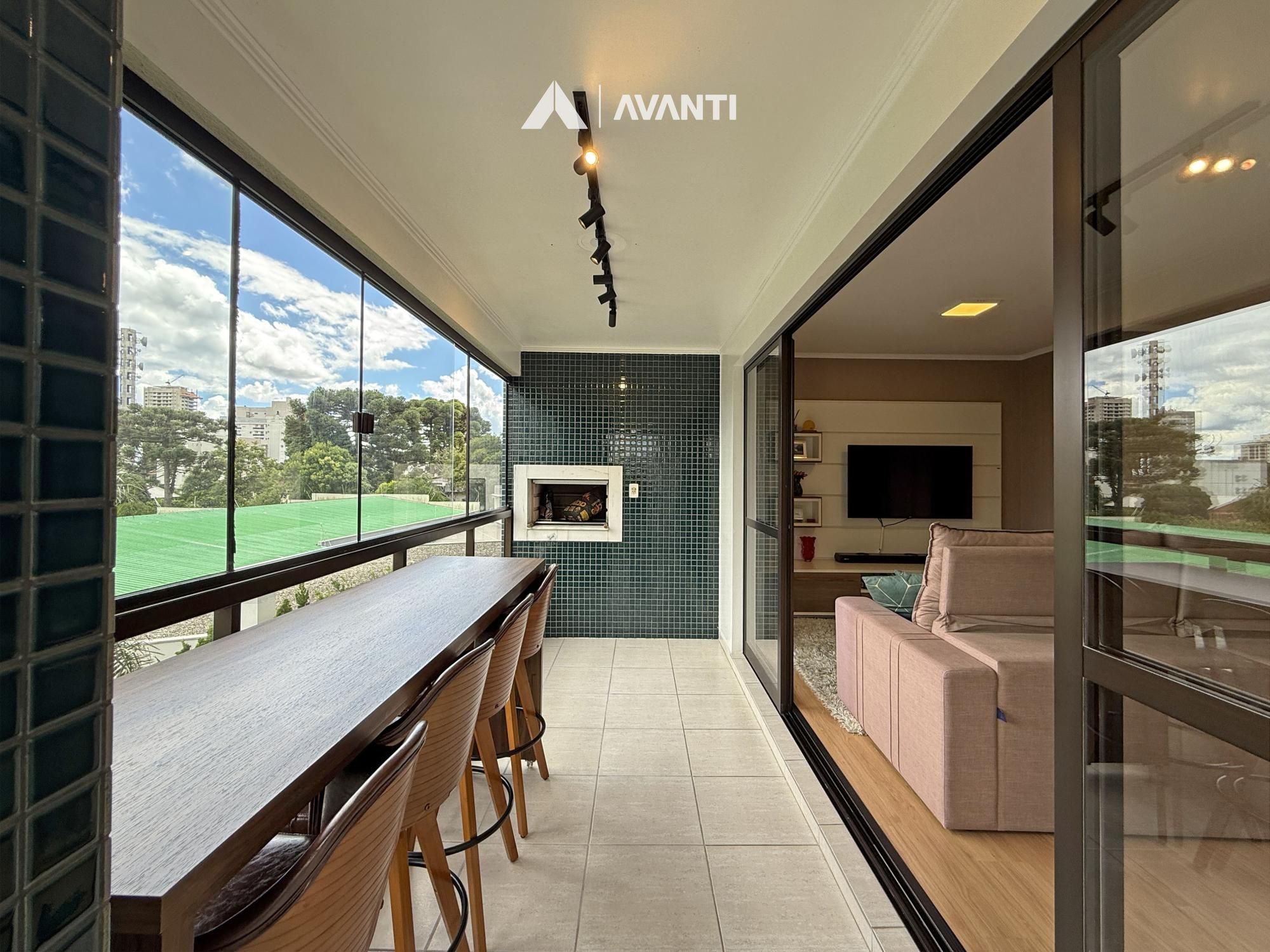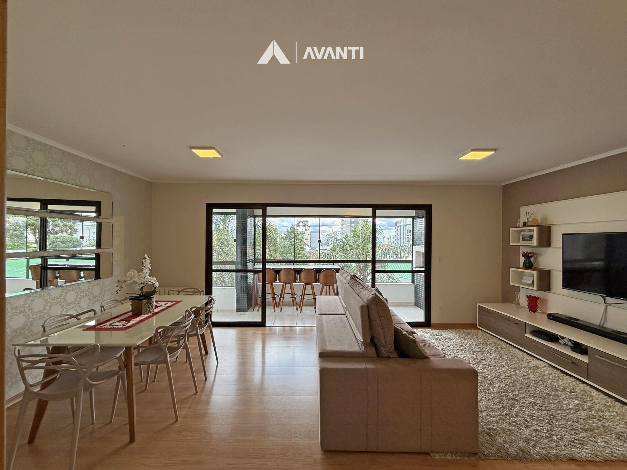 Composto por amplo living que comporta estar social, jantar, hall de entrada e 2 sacadas.
