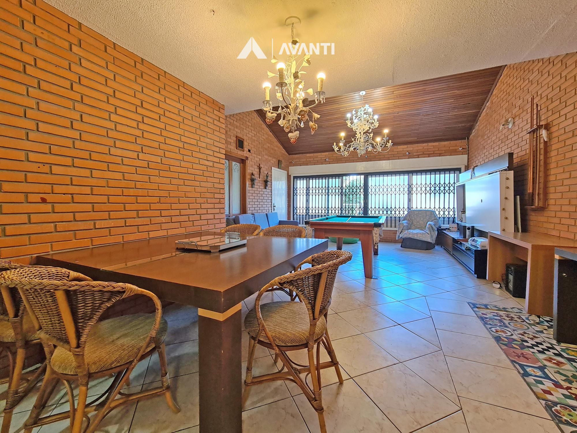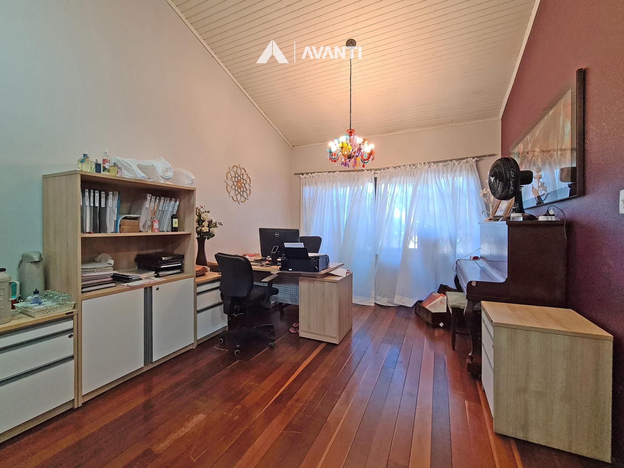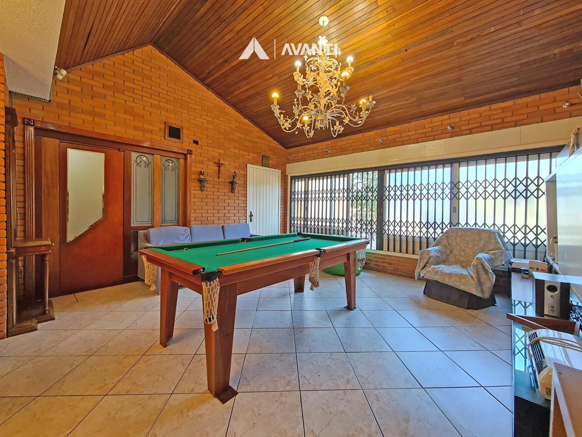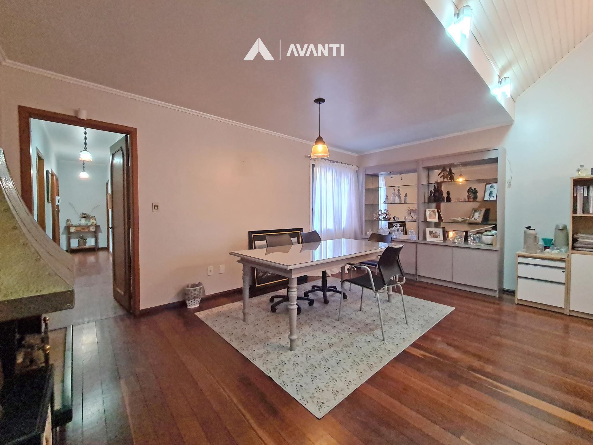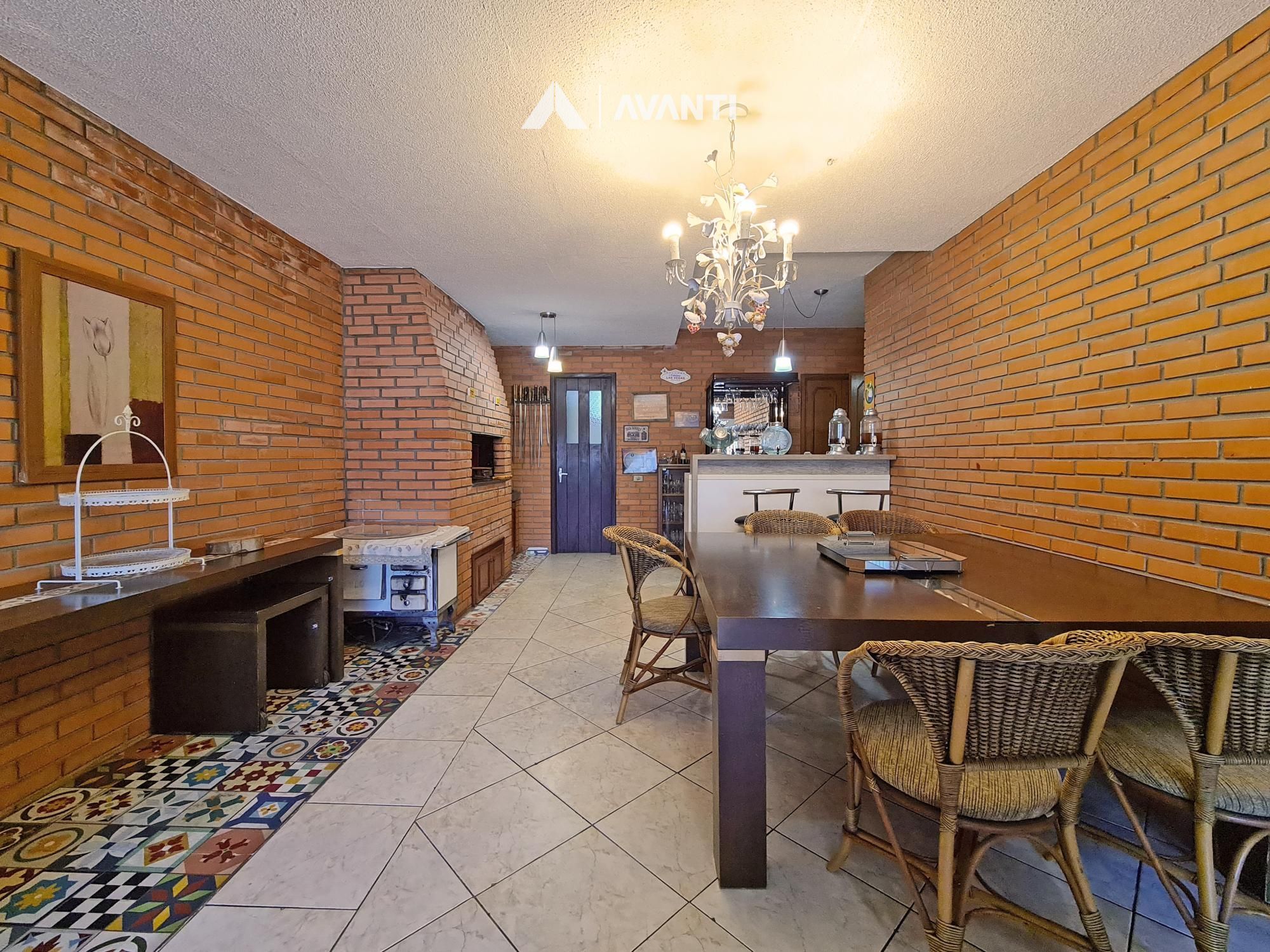 Dispõe de área gourmet, living com lareira, escritório, sala de jantar, cozinha, área de serviço e banheiro social.