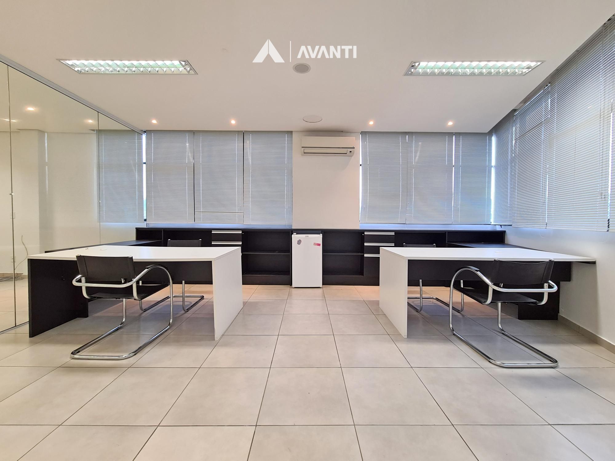 Com área privativa de 207m², orientação solar oeste e vista privilegiada. Fácil acesso, cozinha mobiliada com churrasqueira, ideal para momentos de descontração em equipe, 2 salas em video com splits e móveis sob medida, ar condicionado de teto, iluminação, 3 banheiros, depósito e 1 vaga de garagem.