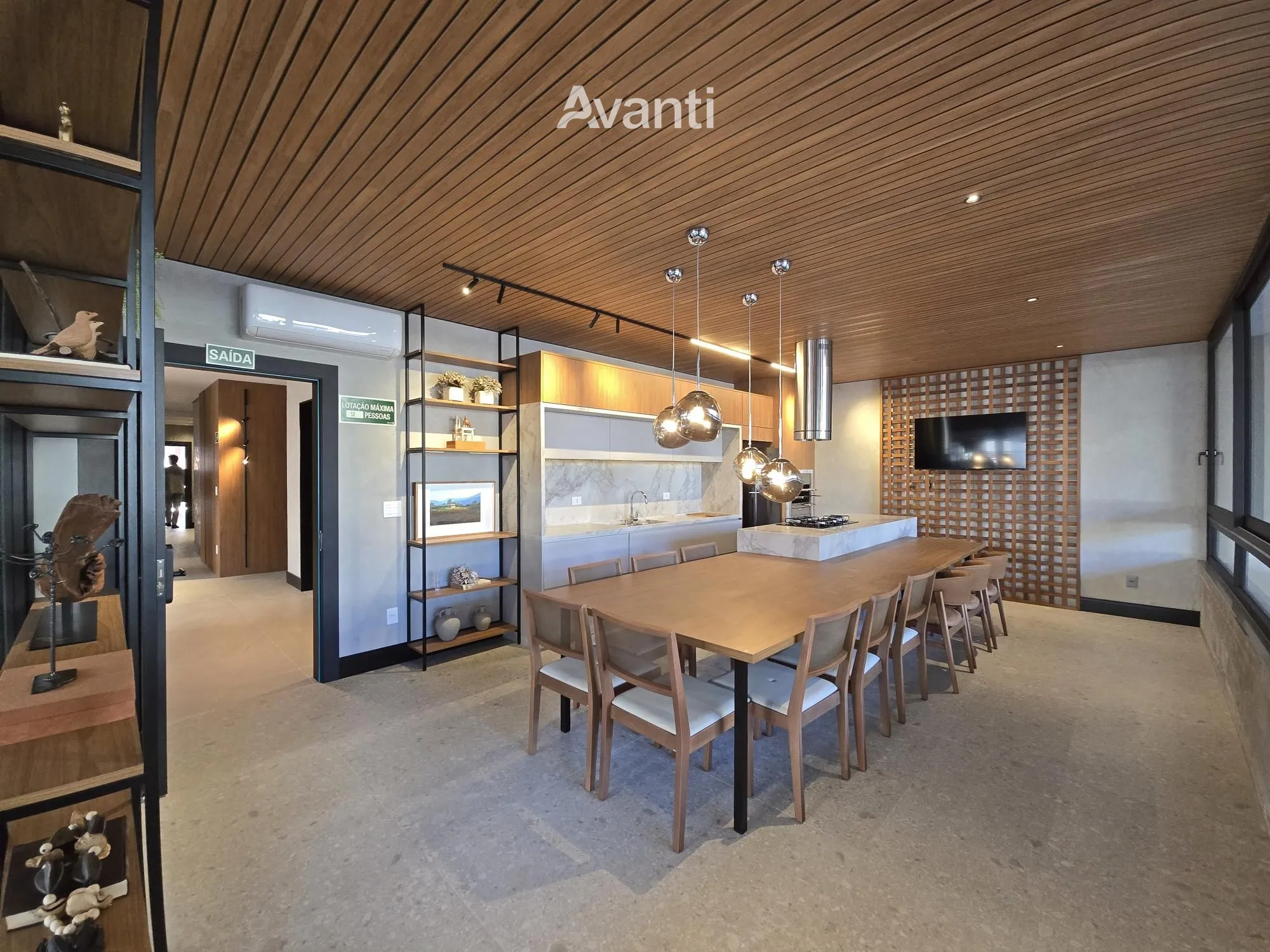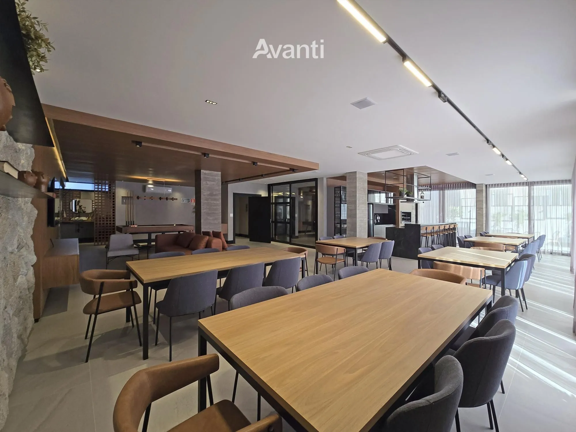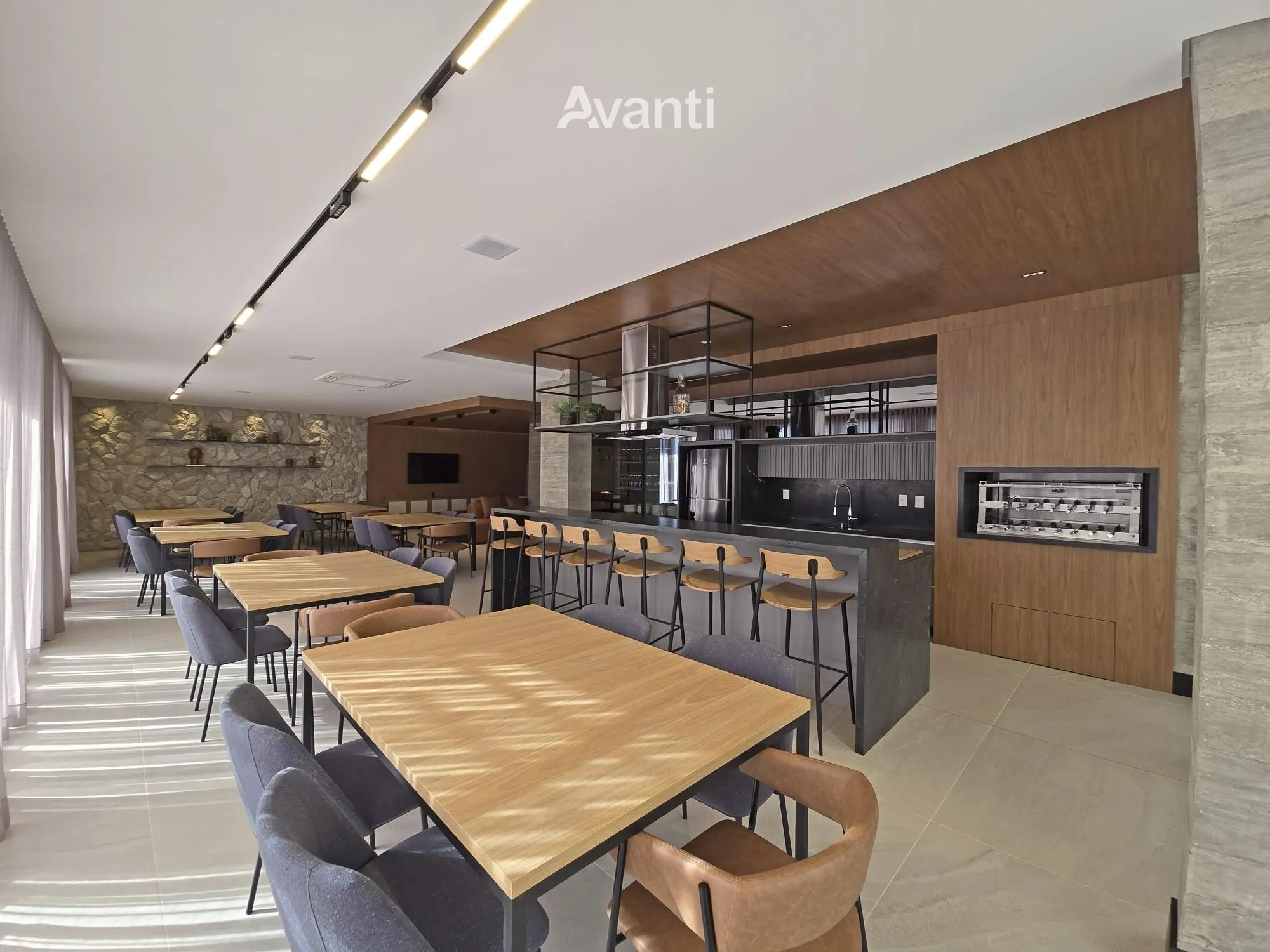 Hall de entrada privativo, lavabo, imponente living em conceito aberto que comporta estar, jantar e cozinha. Amplas aberturas que garantem ótima iluminação natural e acesso para sacada com churrasqueira. Área de serviço com sacada auxiliar.