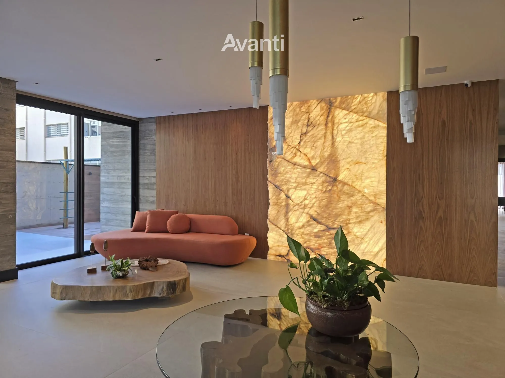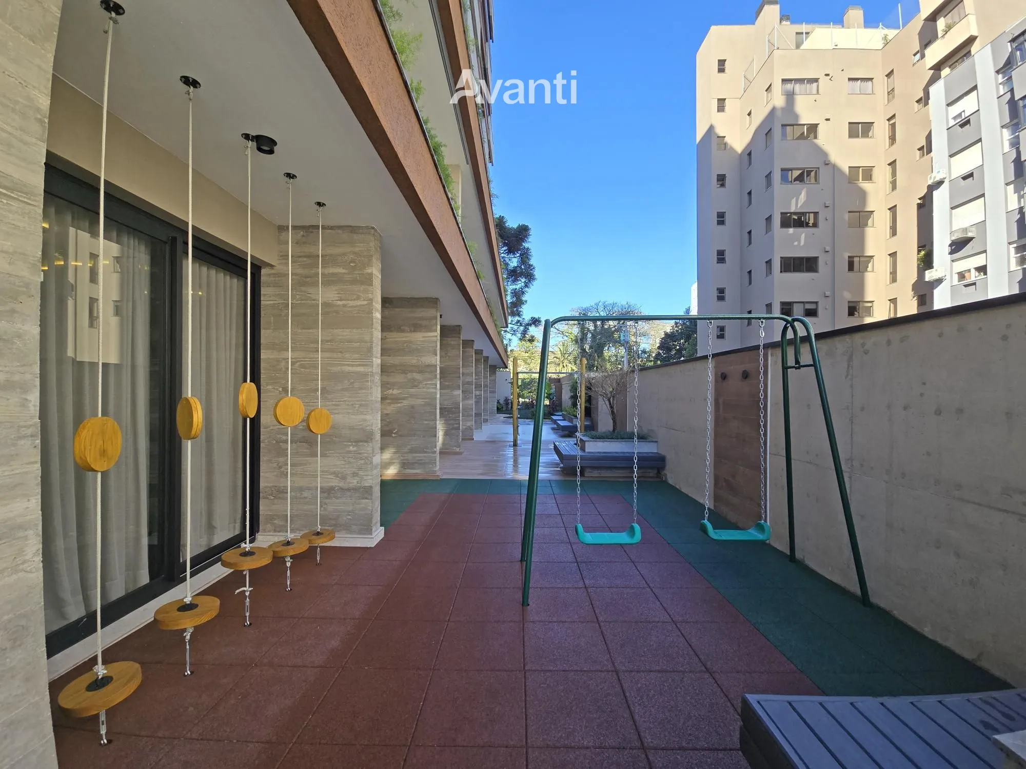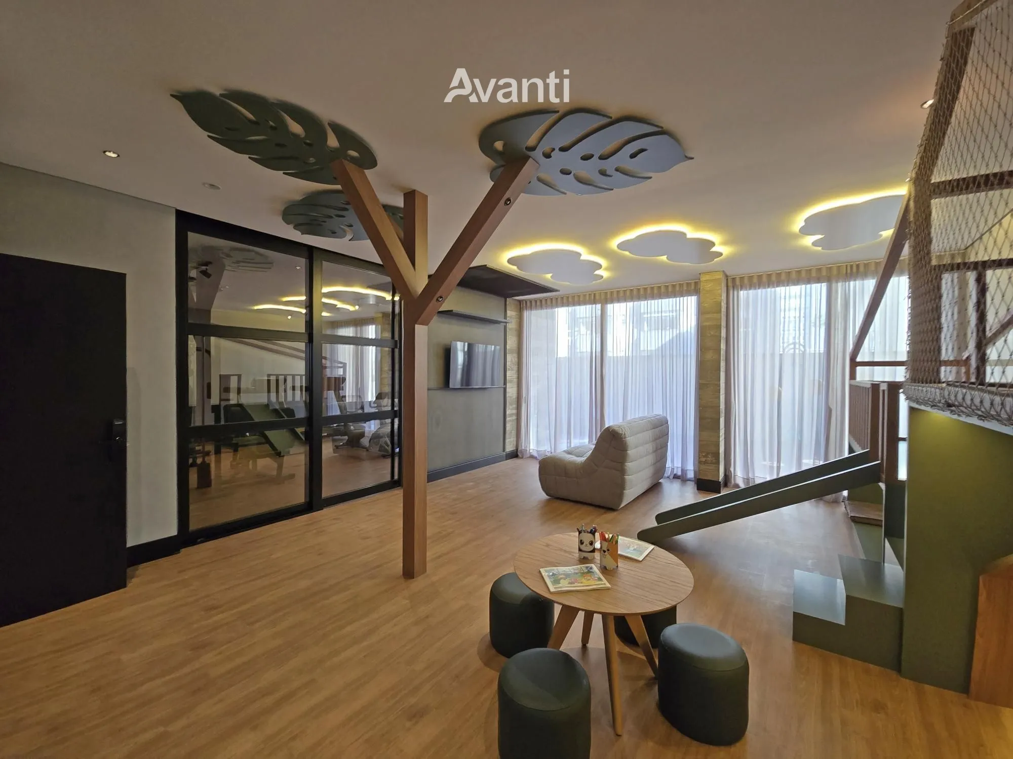 Hall de entrada privativo, lavabo, imponente living em conceito aberto que comporta estar, jantar e cozinha. Amplas aberturas que garantem ótima iluminação natural e acesso para sacada com churrasqueira. Área de serviço com sacada auxiliar.
