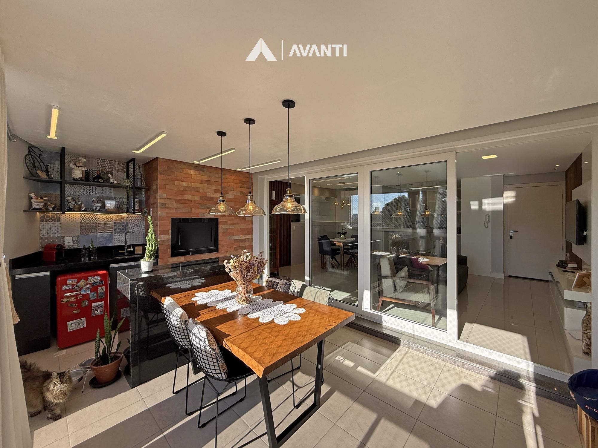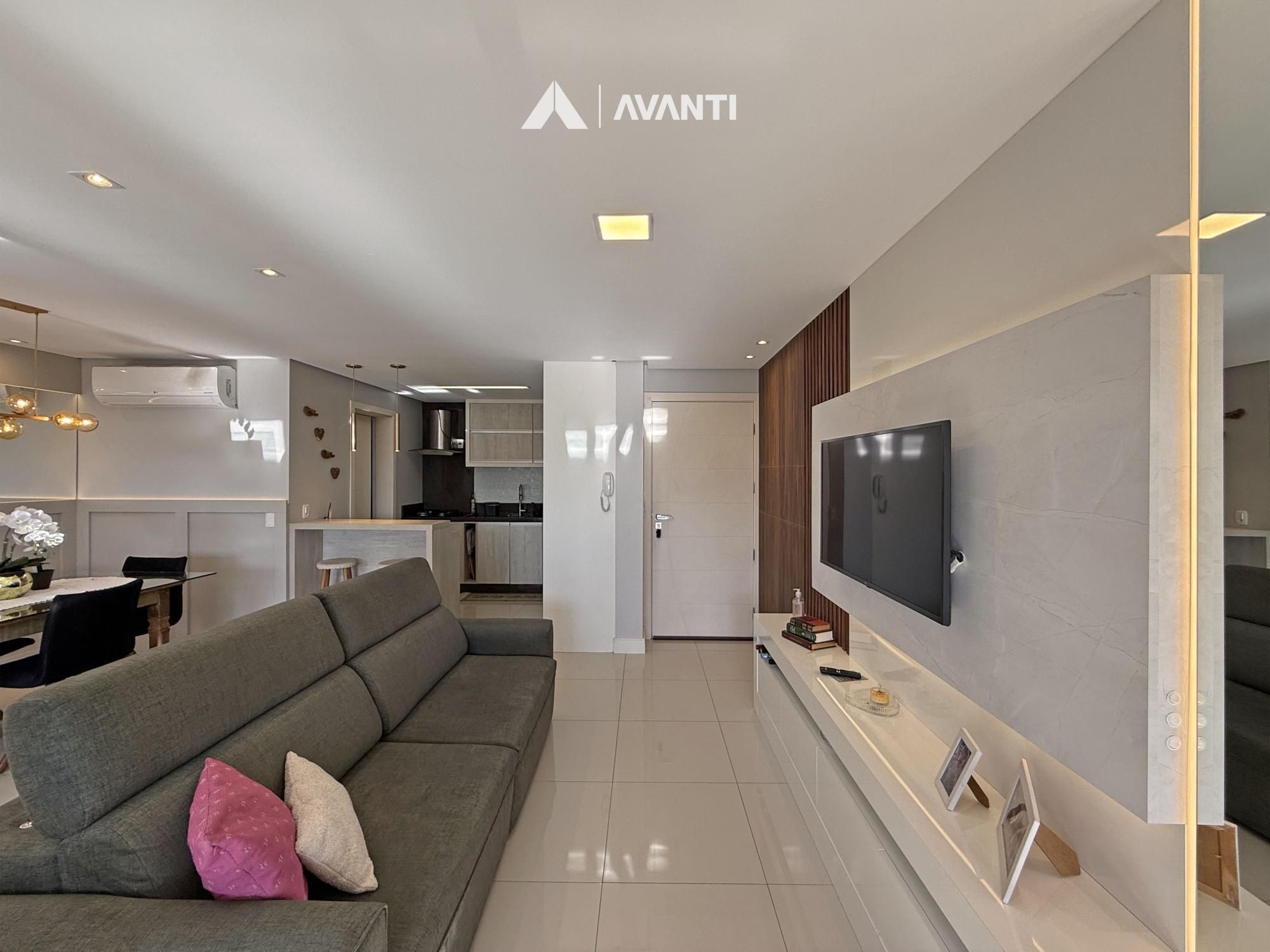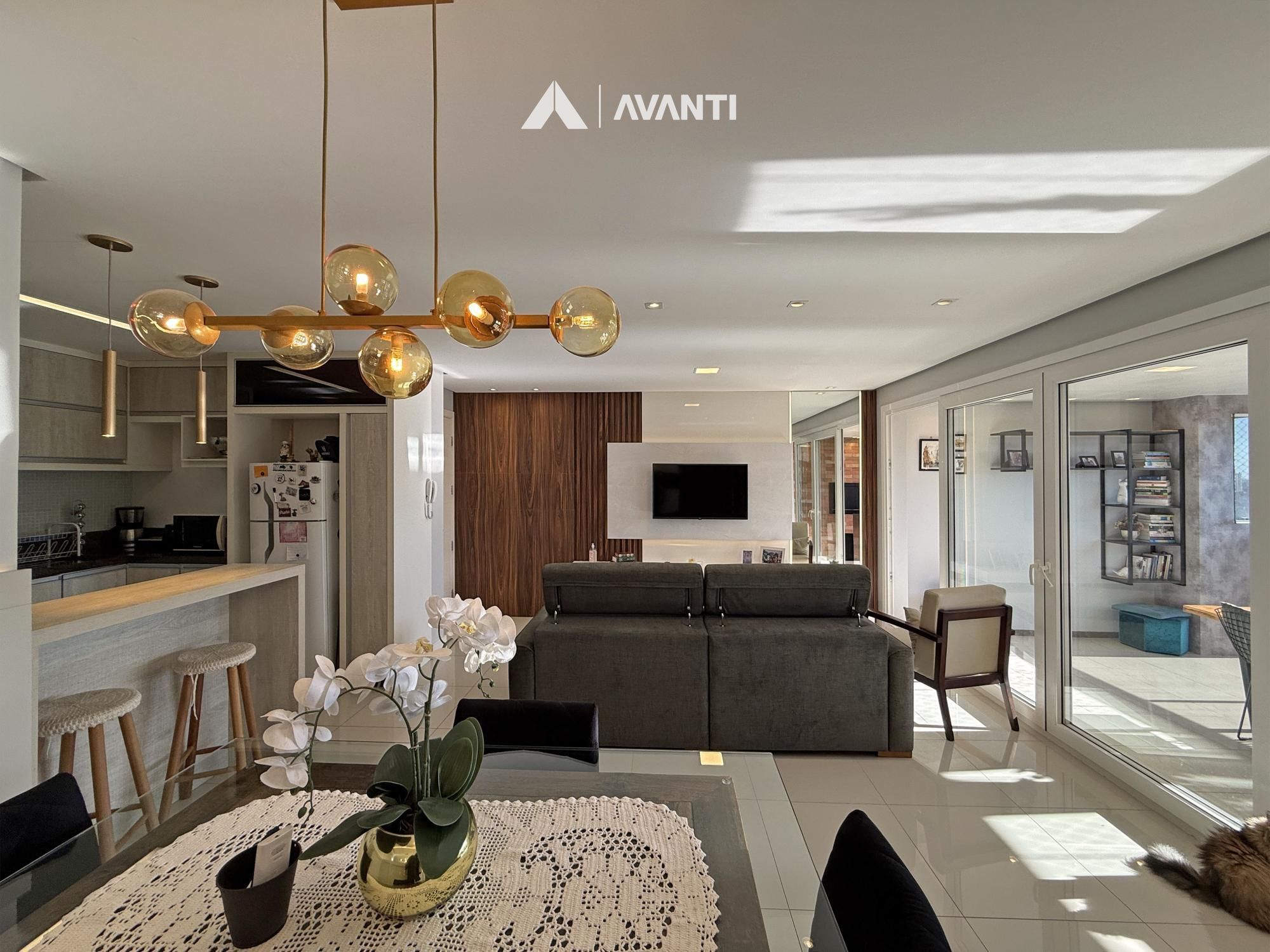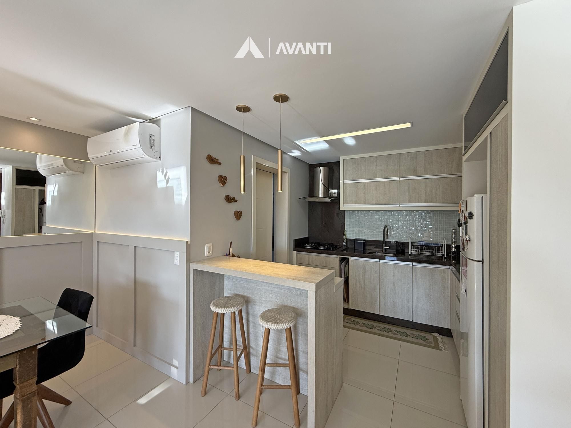 Composto por living integrado, sacada gourmet com fechamento e reiki, cozinha, área de serviço e banheiro social.