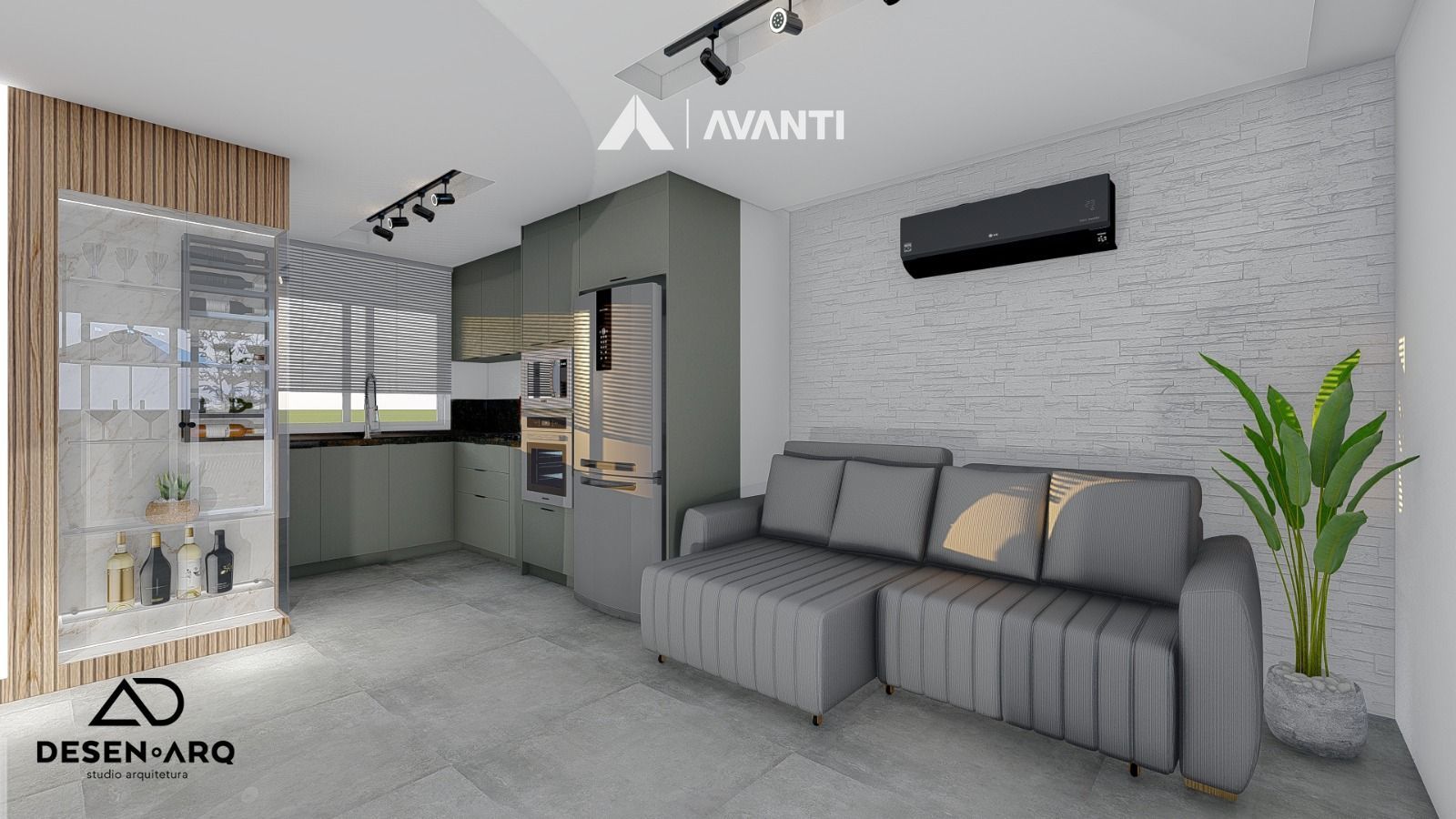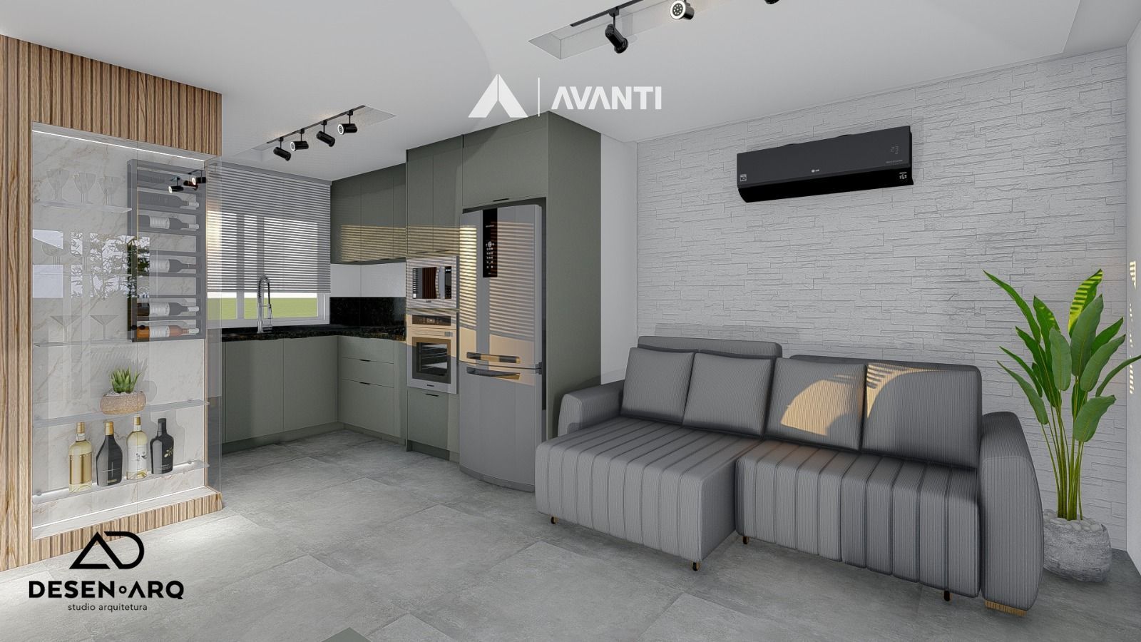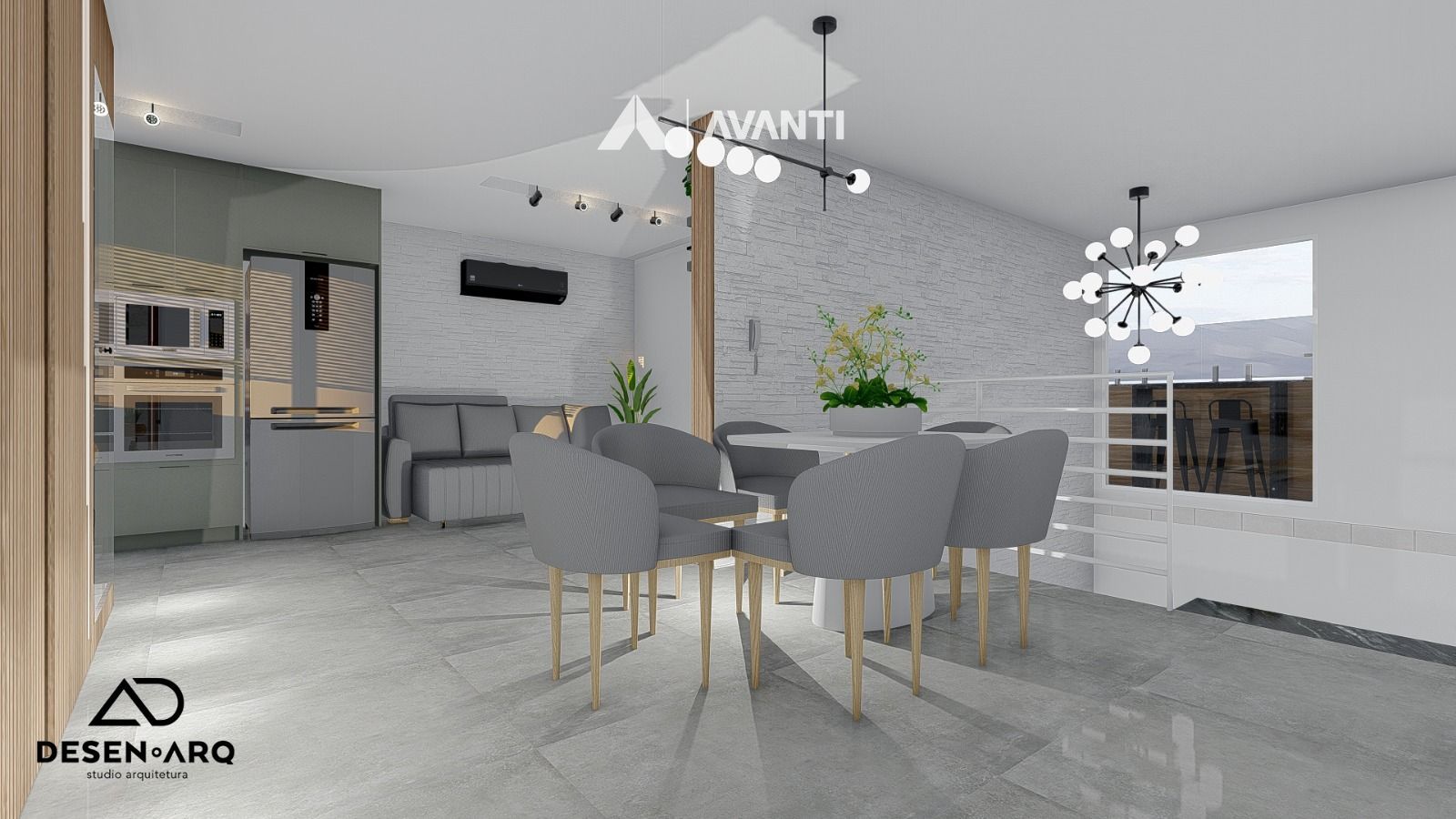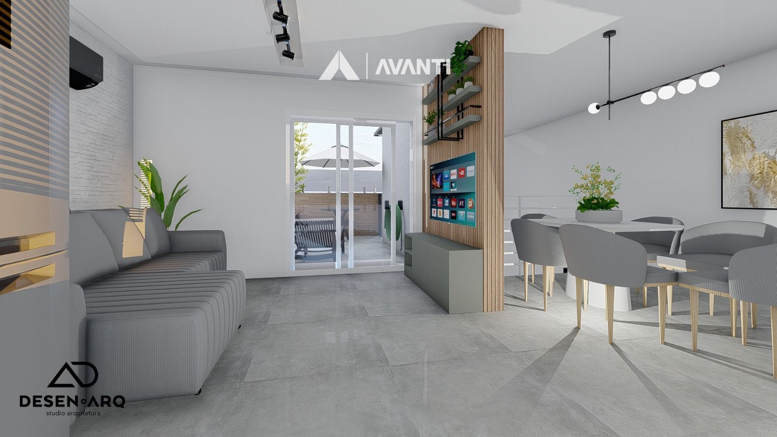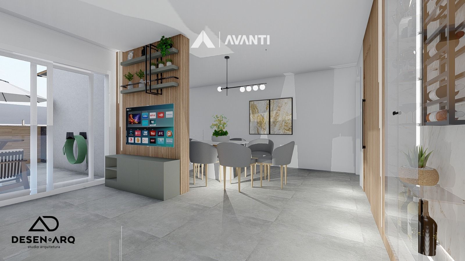 Composto por amplo estar social que comporta jantar, estar e cozinha, conta com terraço com churrasqueira, lavabo, área de serviço e banheiro social.