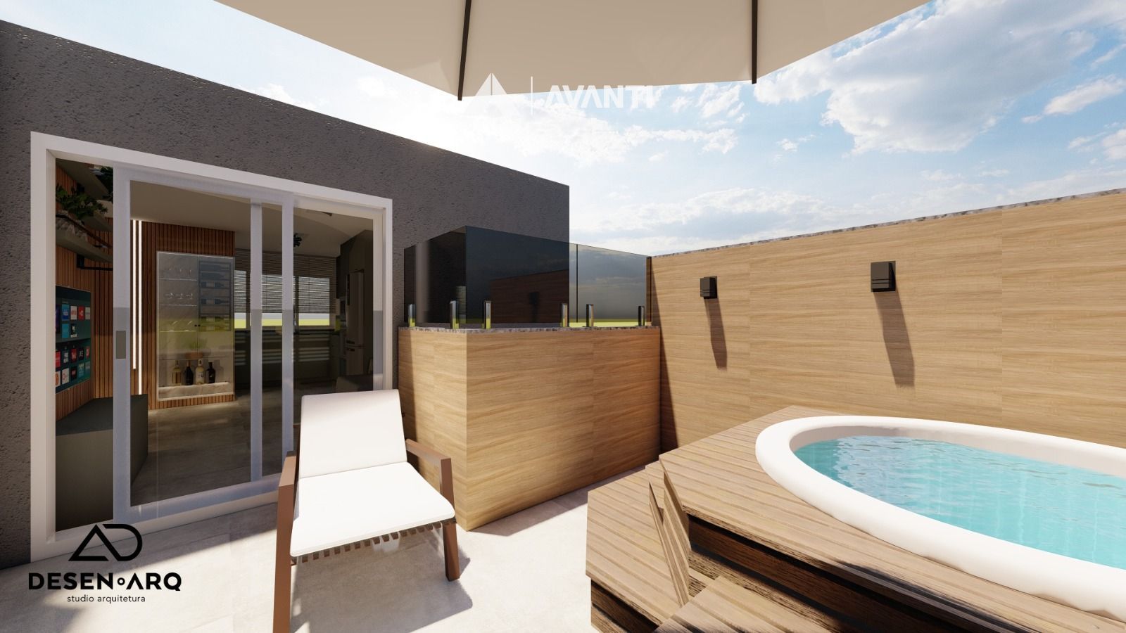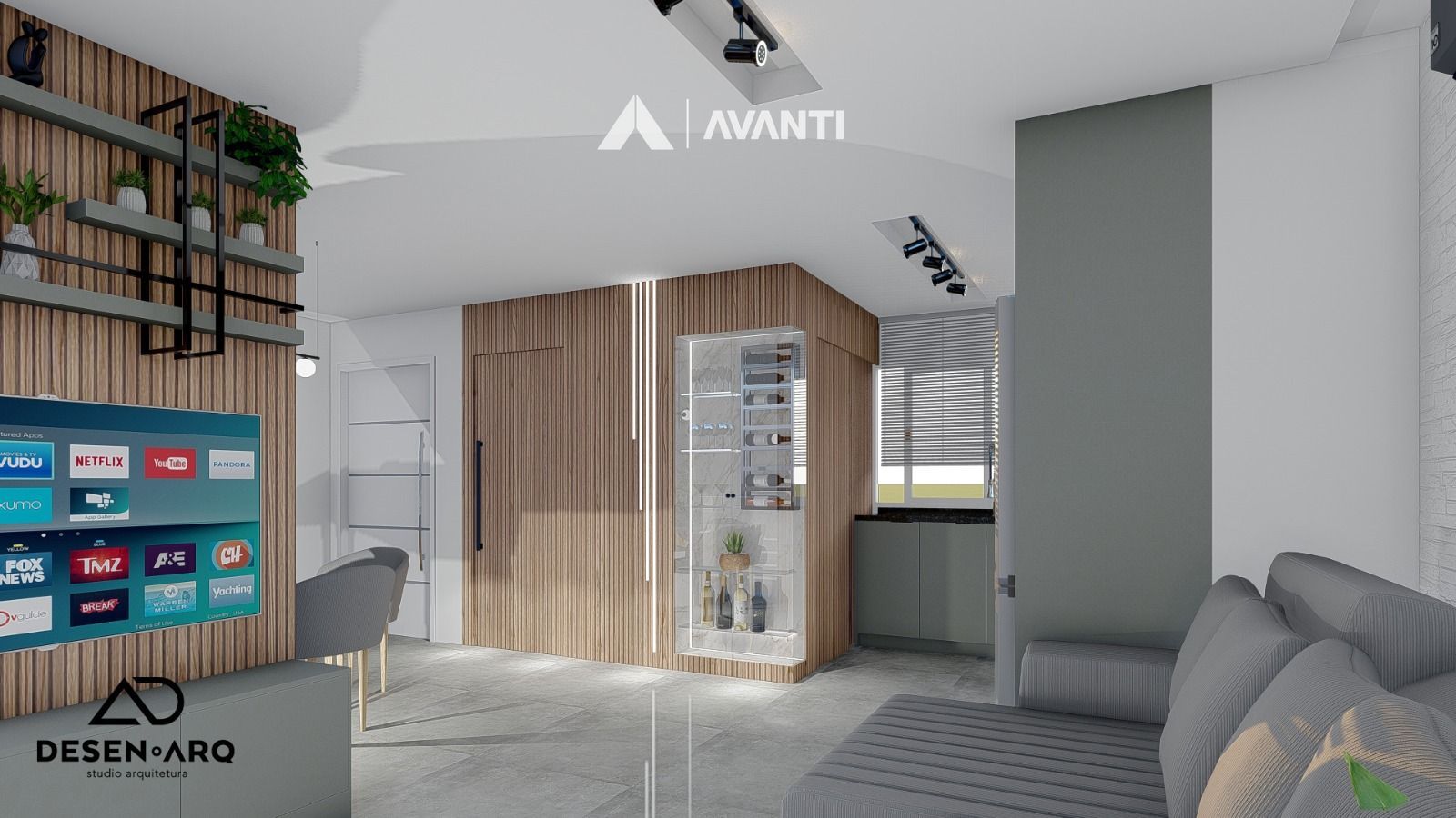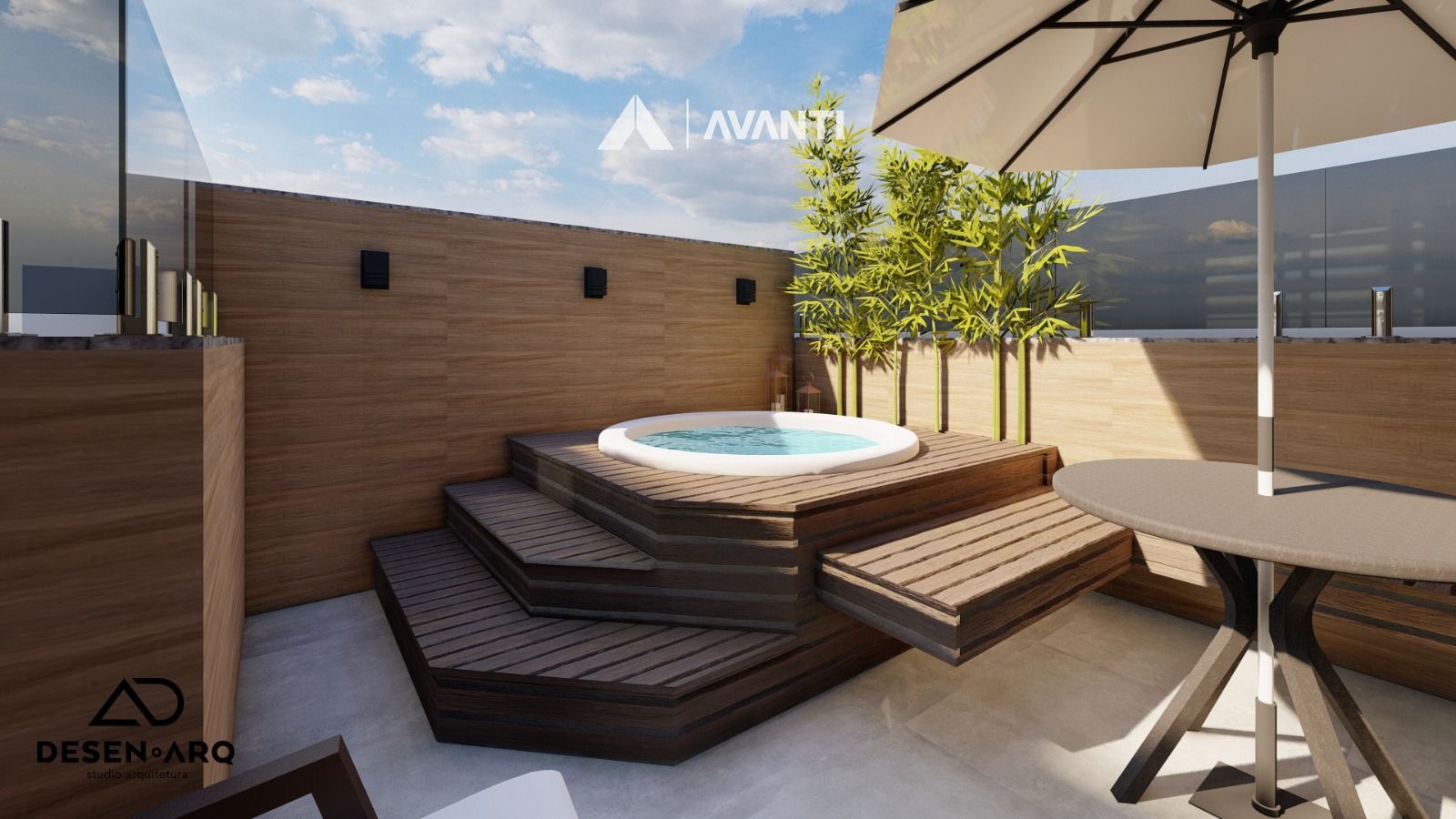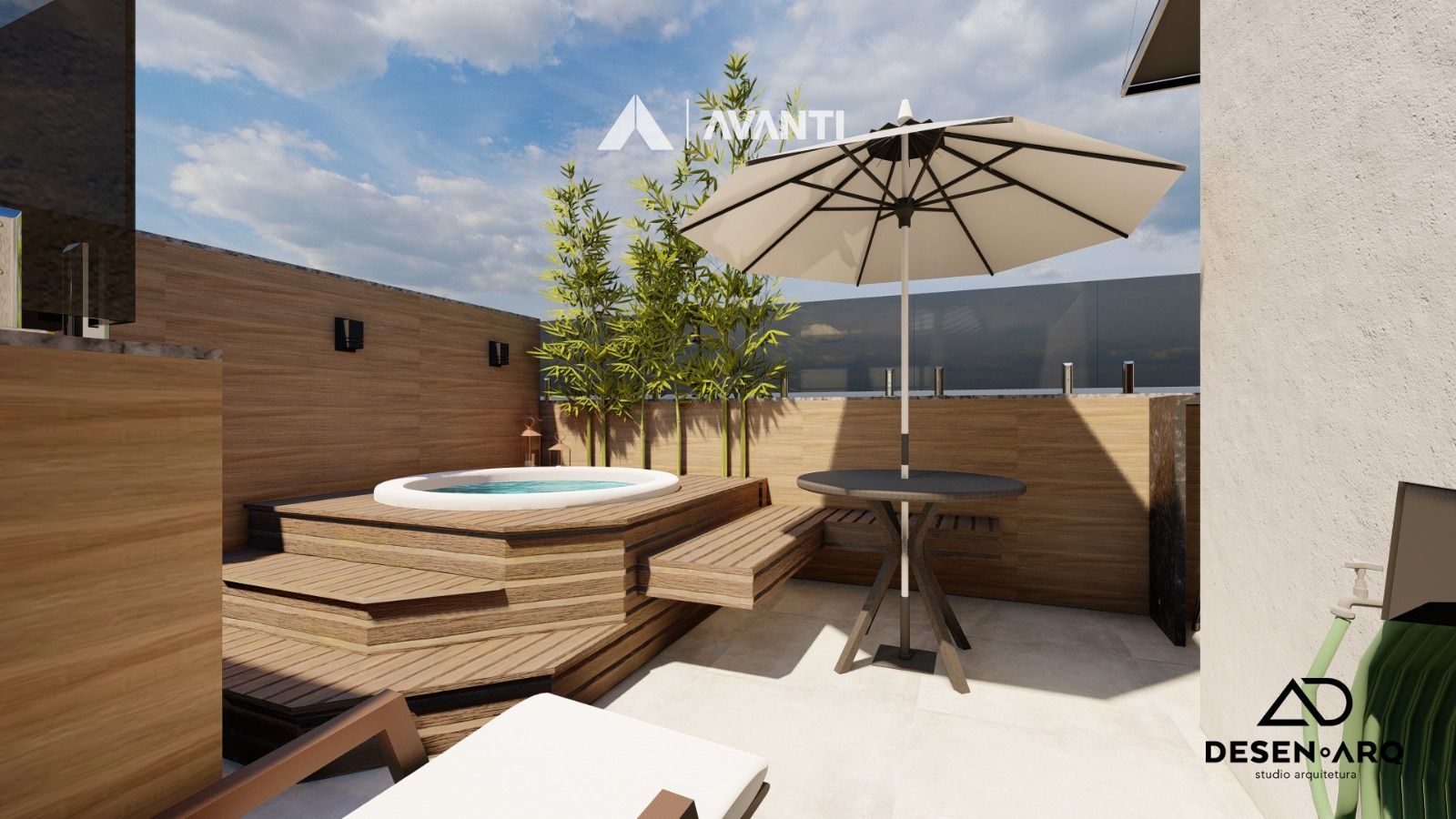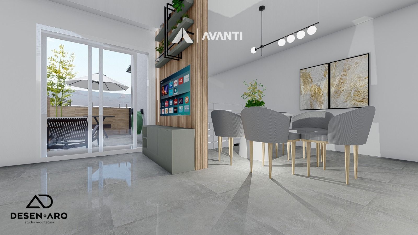 Composto por amplo estar social que comporta jantar, estar e cozinha, conta com terraço com churrasqueira, lavabo, área de serviço e banheiro social.