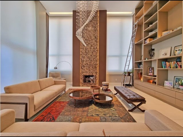 Composto por grandioso living 3 ambientes, dispõe de pé direito duplo com lareira e biblioteca, sala de jantar, sala de estar, cozinha americana com churrasqueira, sala TV, lavabo, área de serviço com dependência e banheiro auxiliar.