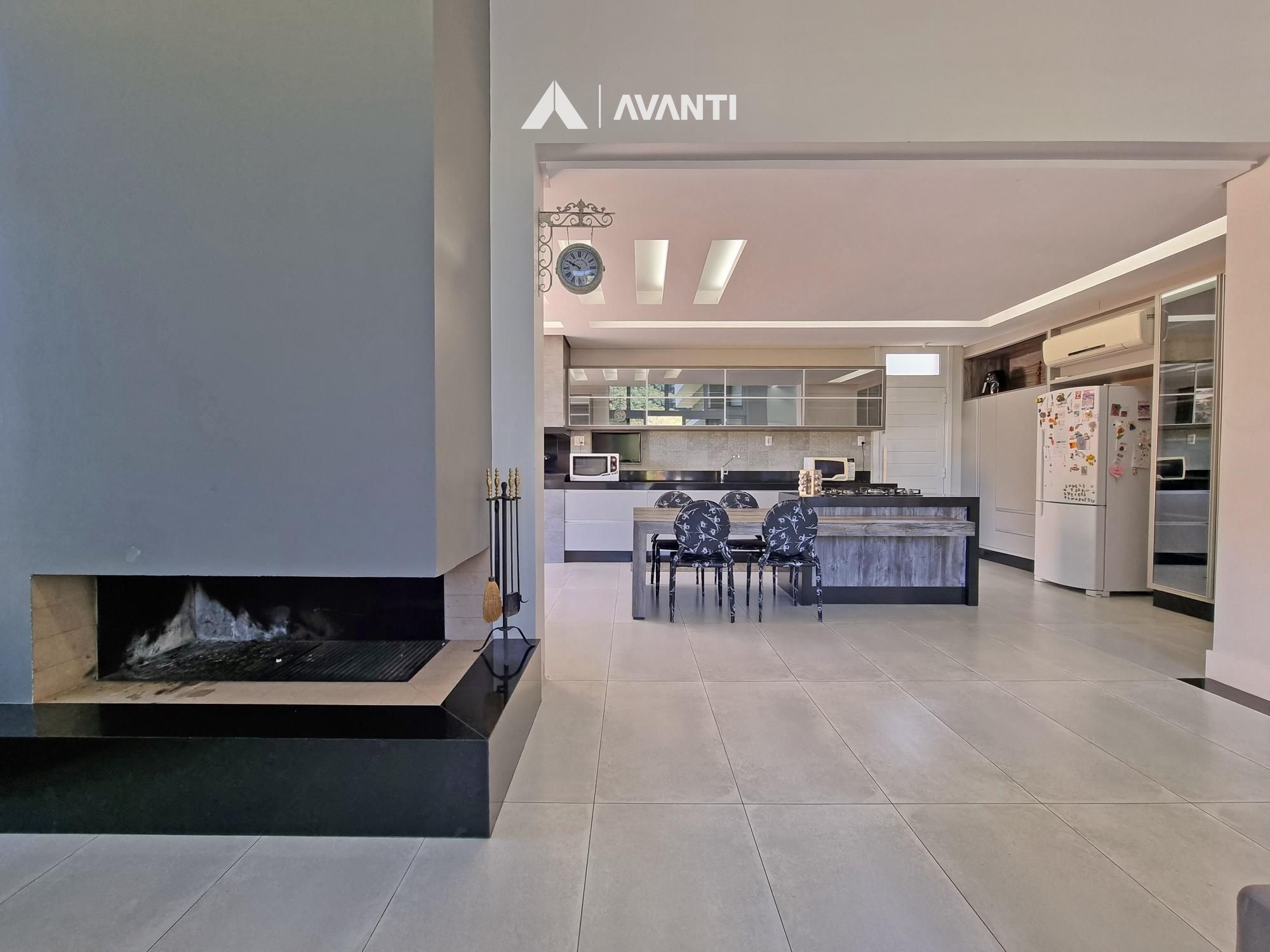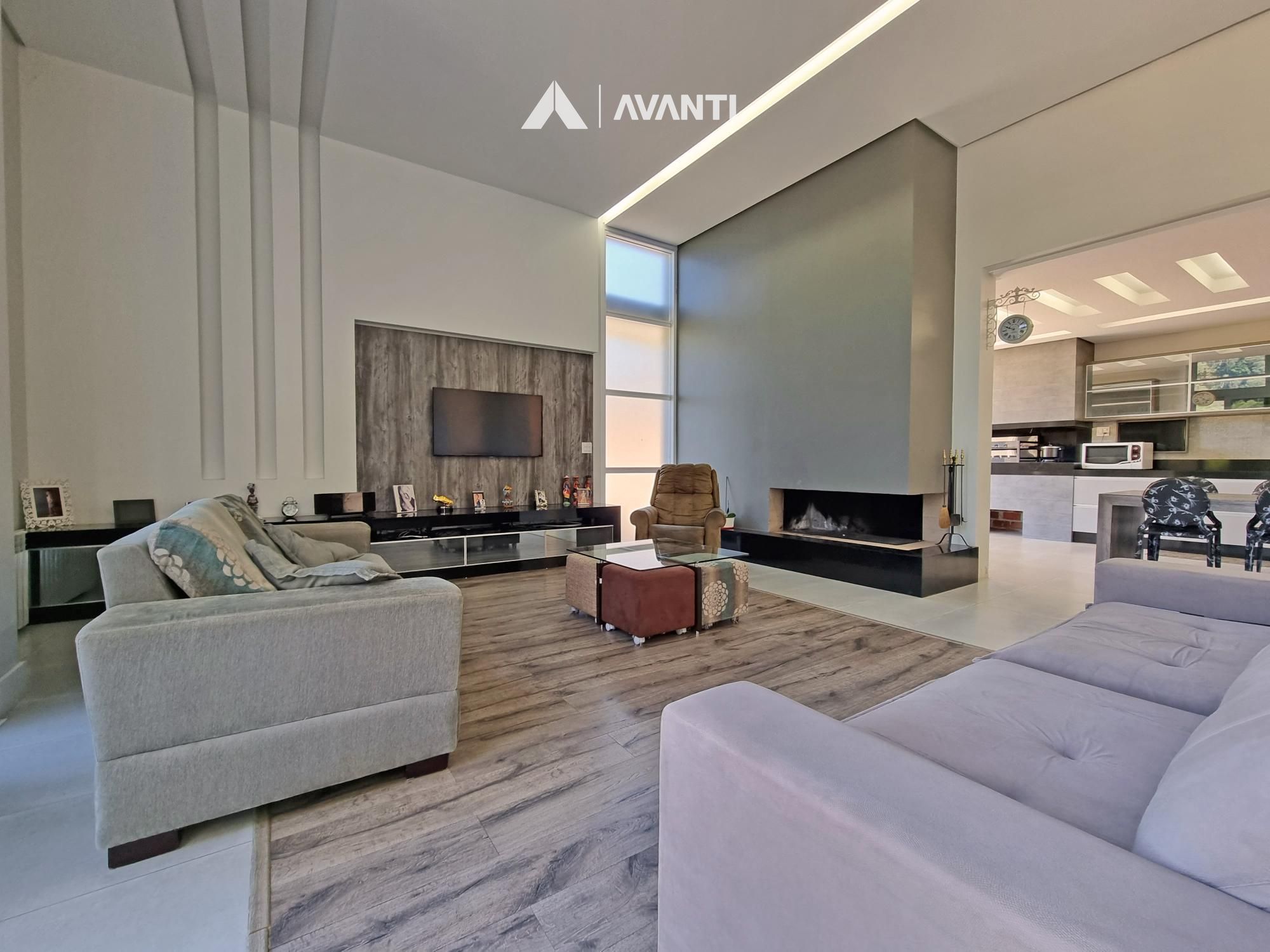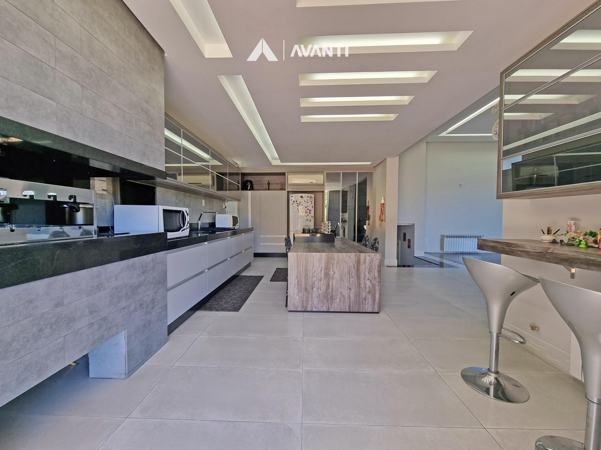 Conta com imponente living com pé direito duplo, lareira, cozinha com churrasqueira, escritório, lavabo e área de serviço com terraço.