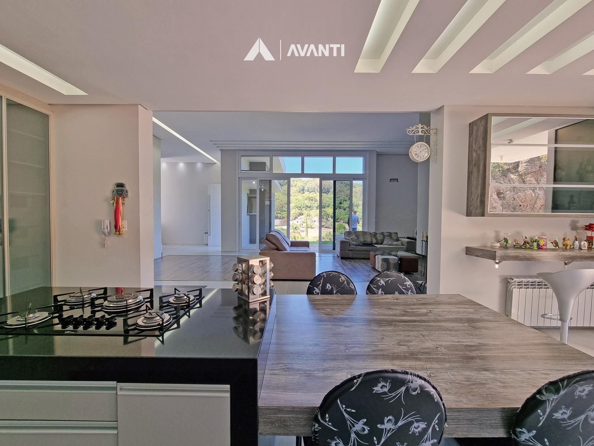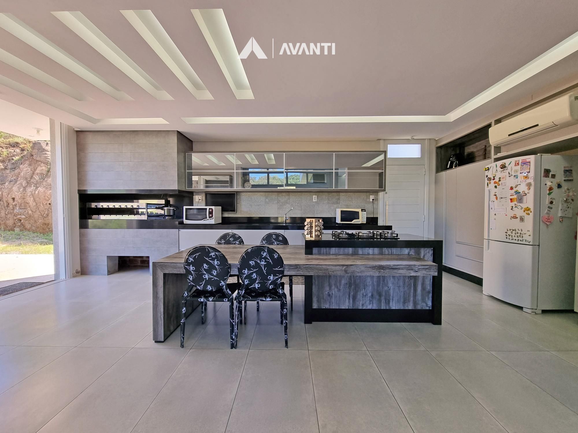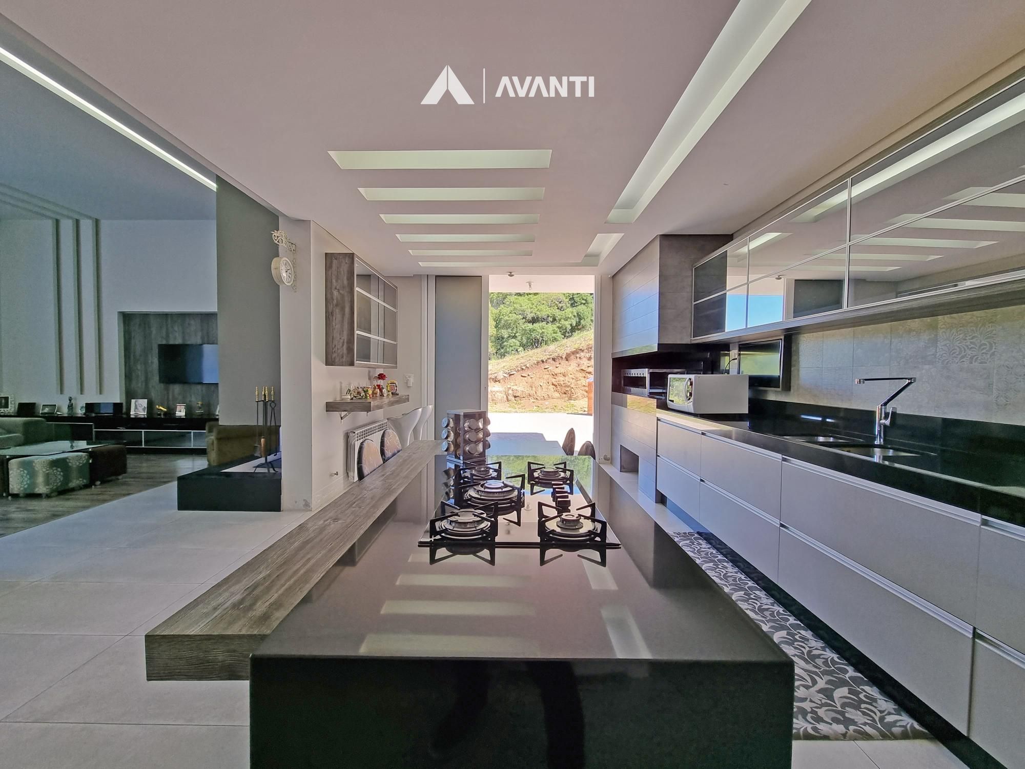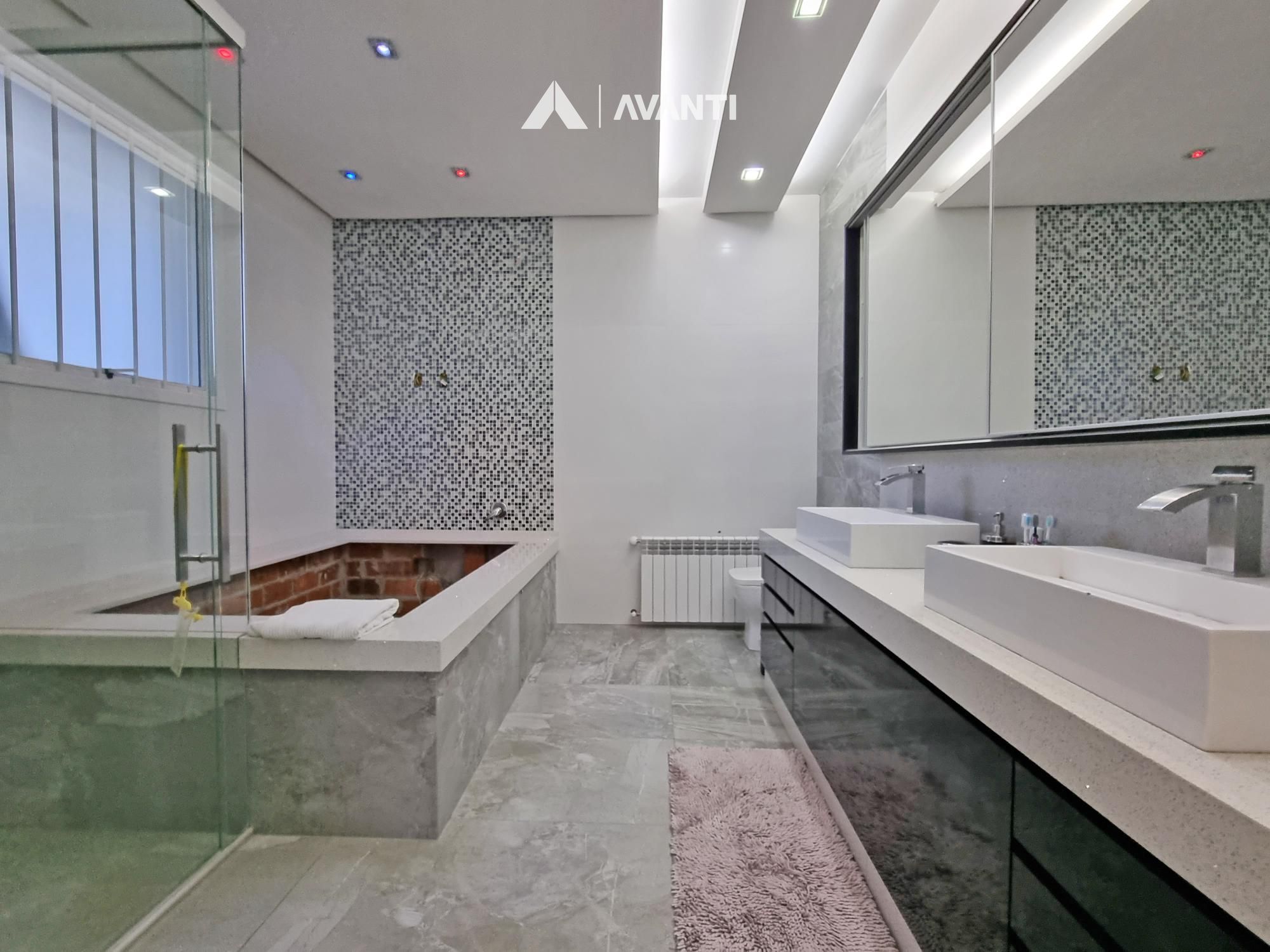 Conta com imponente living com pé direito duplo, lareira, cozinha com churrasqueira, escritório, lavabo e área de serviço com terraço.