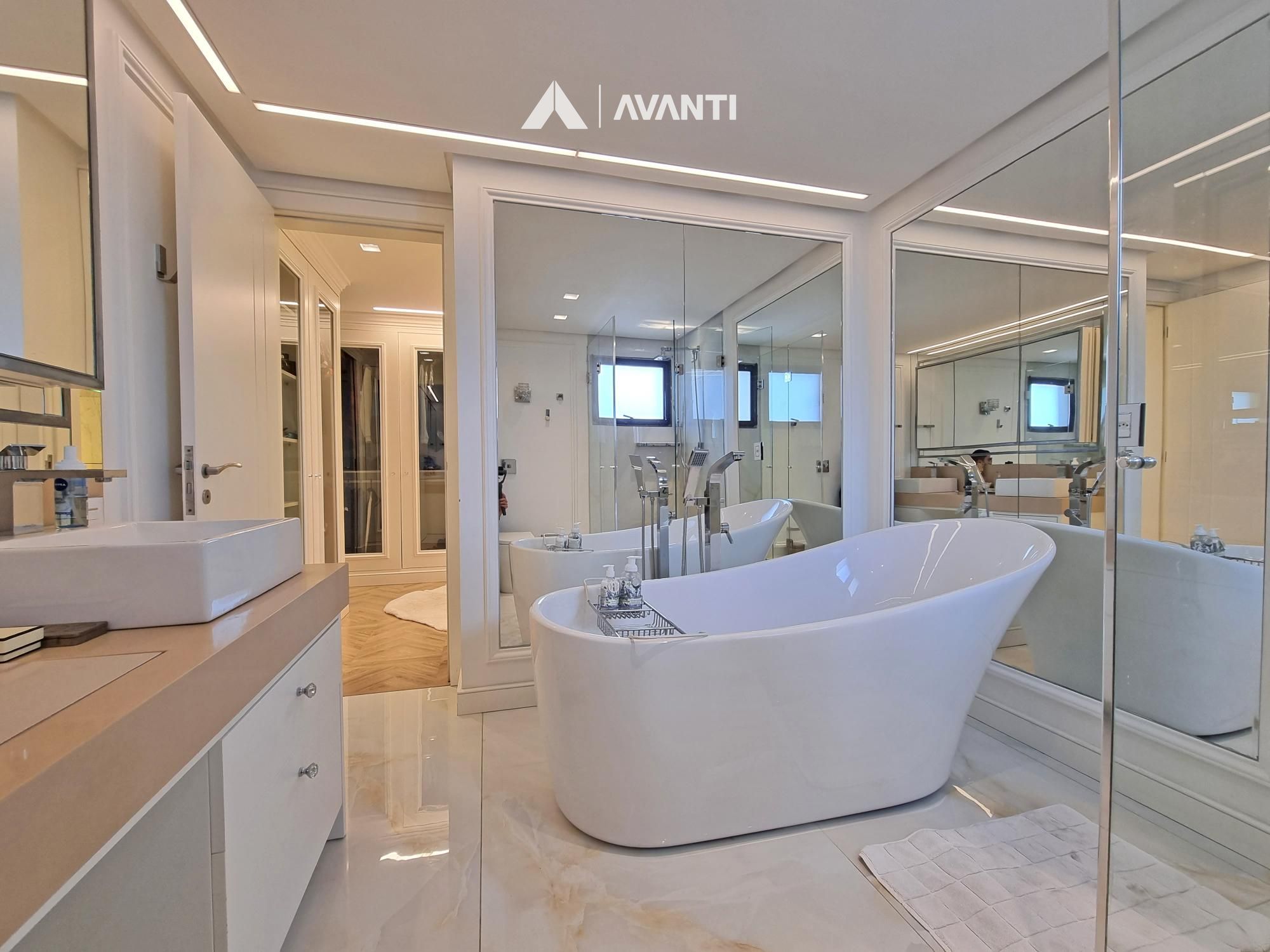 Com área privativa de 304m², o duplex é disposto da seguinte forma: